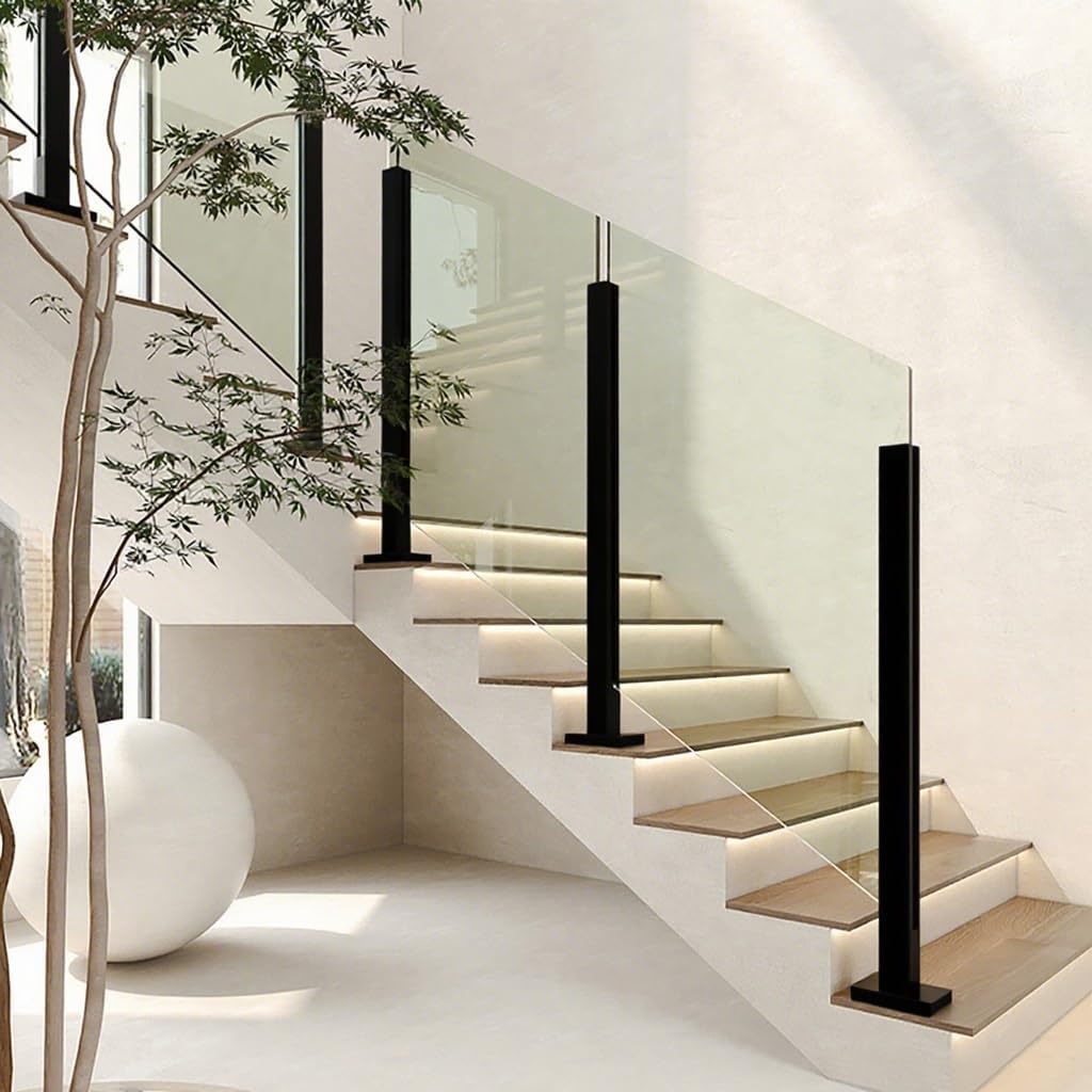 Enhance your outdoor spaces with our premium glass railing system, designed to provide an unobstructed view while ensuring safety and style. Perfect for patios, balconies, or porches, this system combines modern aesthetics with reliable functionality. The transparent glass panels allow natural light to penetrate, making your outdoor area feel more open and inviting. The attractive wire rope railing adds a sophisticated touch, making it a perfect fit for any outdoor setting. Installation is straightforward, allowing you to achieve a professional look without needing extensive skills or tools.Product Specifications:- Material: Crafted from durable 304 stainless steel for long-lasting performance.- Available Types: Corner post, end post, and center post to suit your specific needs.Dimensions:- Tube Wall Thickness: 1.2 mm (0.04 inches) for robust support.- Glass Spigot Groove Size: 1.5 x 1.5 cm (0.59 x 0.59 inches) for secure glass fitting.- Compatible Material Thickness: Suitable for glass, wood, plastic, or acrylic with thickness options of 10mm or 12mm (5+5mm or 6+6mm).- Post Dimensions: 5 x 5 cm (2 x 2 inches) with a base size of 10 x 10 cm (3.9 x 3.9 inches).- Post Spacing: Maximum distance of 1.2 m (47.2 inches or 3.9 feet) between two posts.- Height from Ground: Glass groove height is 5 cm (1.96 inches).- Glass Height Flexibility: Glass can be installed higher than or flush with the railing post for a seamless look.Functionality:1. End Post: Connects the glass pane at the end, providing stability.2. Center Post: Supports the middle of the glass panels for enhanced durability.3. Corner Post: Perfect for 90° corners, ensuring a secure fit for glass panes.
