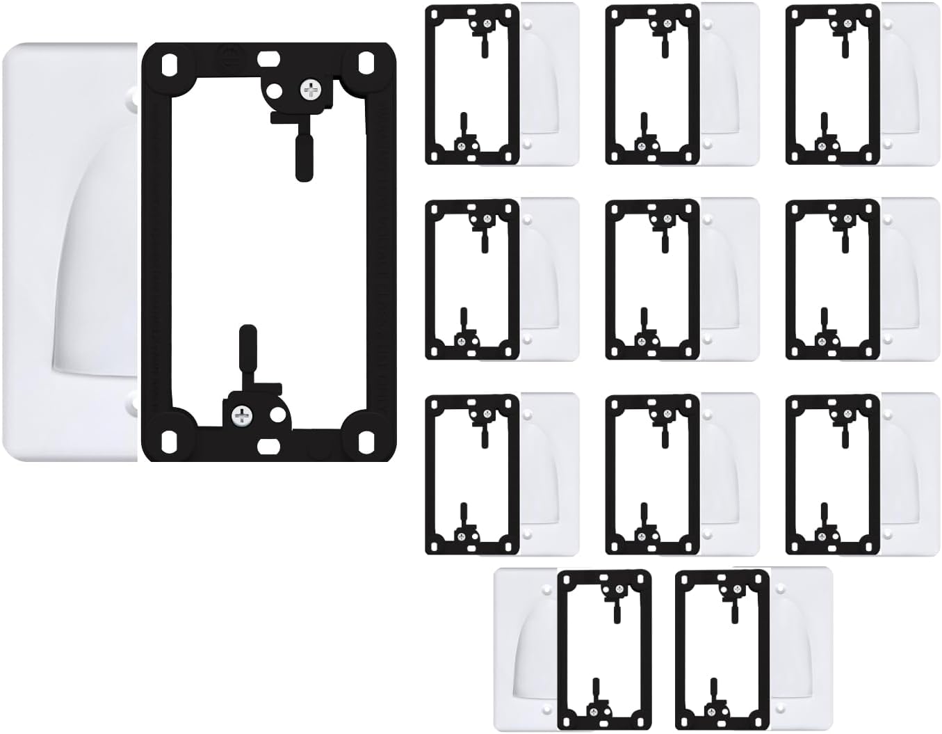 12 Pack Wall Plate & 12 Pack Bracket Single Gang - in Wall Cable Management Kit - Recessed Cable Wall Plate Pair with Single Gang Low Voltage Mounting Bracket - Decorator Cover for Low Voltage Cables