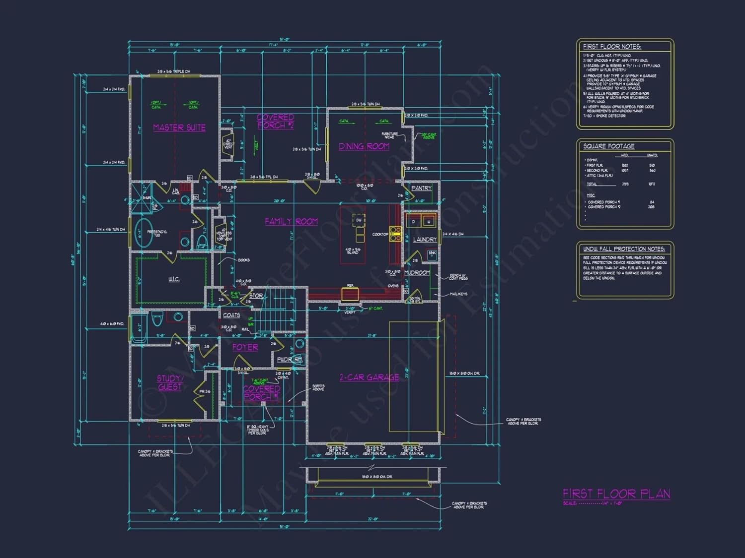 Width: 51′-0″Depth: 60′-8″Htd SF: 2,919Unhtd SF: 1,012Custom Designed Home Plan with CAD Blueprints and Timeless FeaturesExplore this beautiful 2-story house plan with 2,919 heated sq. ft., open layout, CAD blueprints, and 4 bedrooms—designed for comfort and functionality.This traditional-style house plan offers a perfect mix of comfort and efficiency. Designed with families in mind, it balances classic curb appeal with modern convenience through expert architectural planning and functional details.Key Features of the Home PlanLiving Areas - Heated & UnheatedHeated area: 2,919 sq. ft. across two spacious stories.Unheated extras: Covered front and rear porches, and attached garage space.Bedrooms & Bathrooms4 spacious bedrooms, including a private first-floor Owner Suite with walk-in closet.3 full bathrooms and 1 half bath, perfectly placed for privacy and ease of use.Interior HighlightsOpen floor plan for seamless movement between the family room, dining area, and kitchen. Explore open layouts.Cozy fireplace in the family room—ideal for relaxing evenings. See fireplace options.Bonus room upstairs—great for a home office, playroom, or guest suite.Walk-in pantry and kitchen island for everyday convenience. Browse kitchen island plans.9ft+ tray ceilings enhance the sense of space and elegance throughout.Garage & Storage DetailsGarage Bays: Attached 2-car garage.Garage Type: Front entry for easy lot access.Storage: Generous walk-in closets, a mudroom, and bonus room storage areas.Outdoor Living FeaturesCovered front porch for welcoming guests or morning coffee.Covered rear porch—perfect for entertaining or winding down outdoors.Exterior combines traditional siding and stone for lasting beauty and curb appeal.Architectural Style: Traditional 2-Story DesignThis plan combines traditional design principles with modern sensibilities—making it a standout for families and