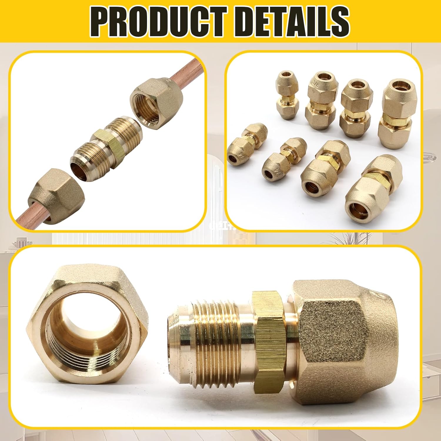 Specification: - Color:Gold - Material:Brass, Copper - Size:1/2" Quantity: - 2Pack Warm Tips: 1. Product dimensions are hand-measured with a production tolerance of 1-2mm. Minor variations between batches may occur, all within quality control standards and without affecting performance. 2. Product images are professionally color-calibrated, but slight variations may appear due to display devices/lighting. For critical color needs, refer to physical samples.