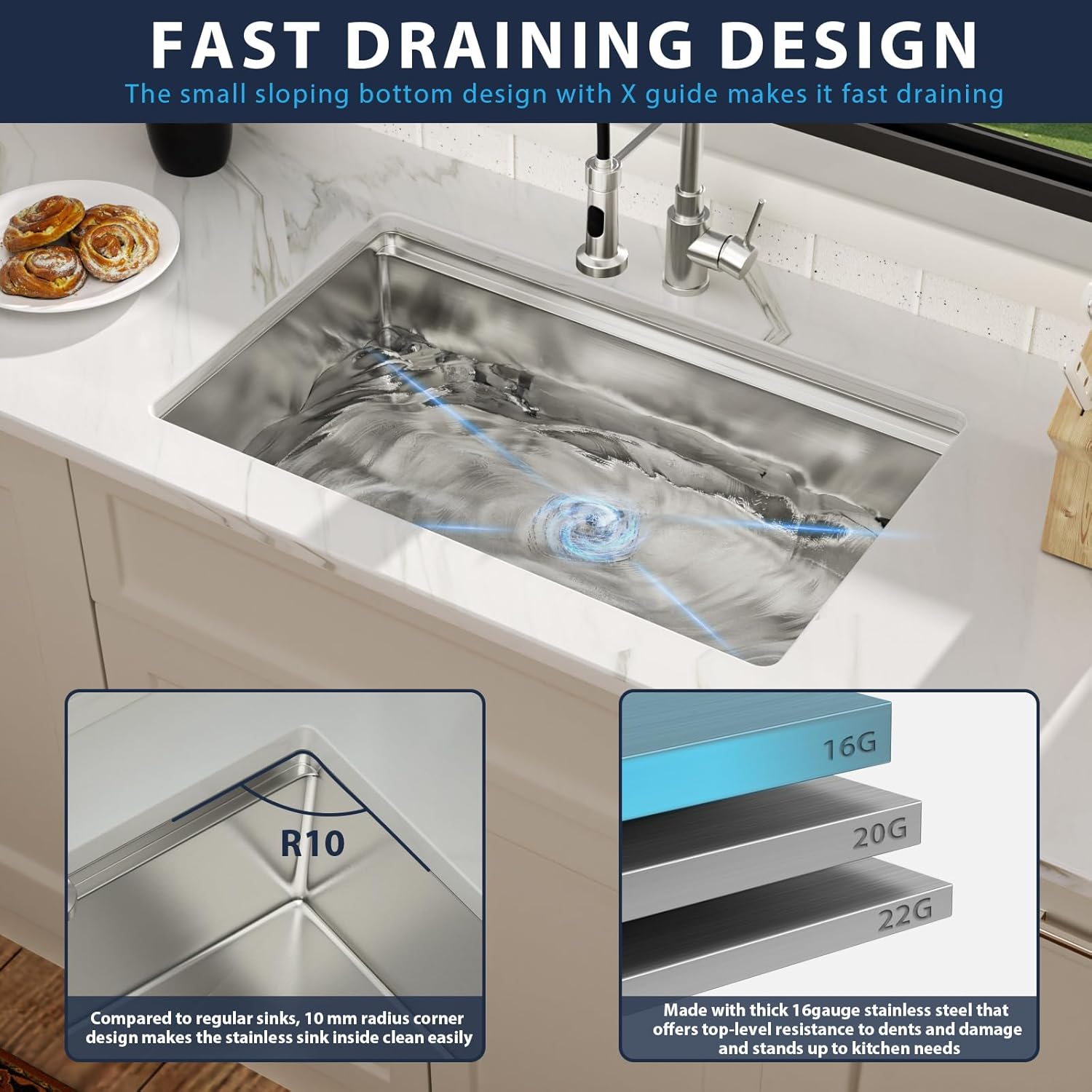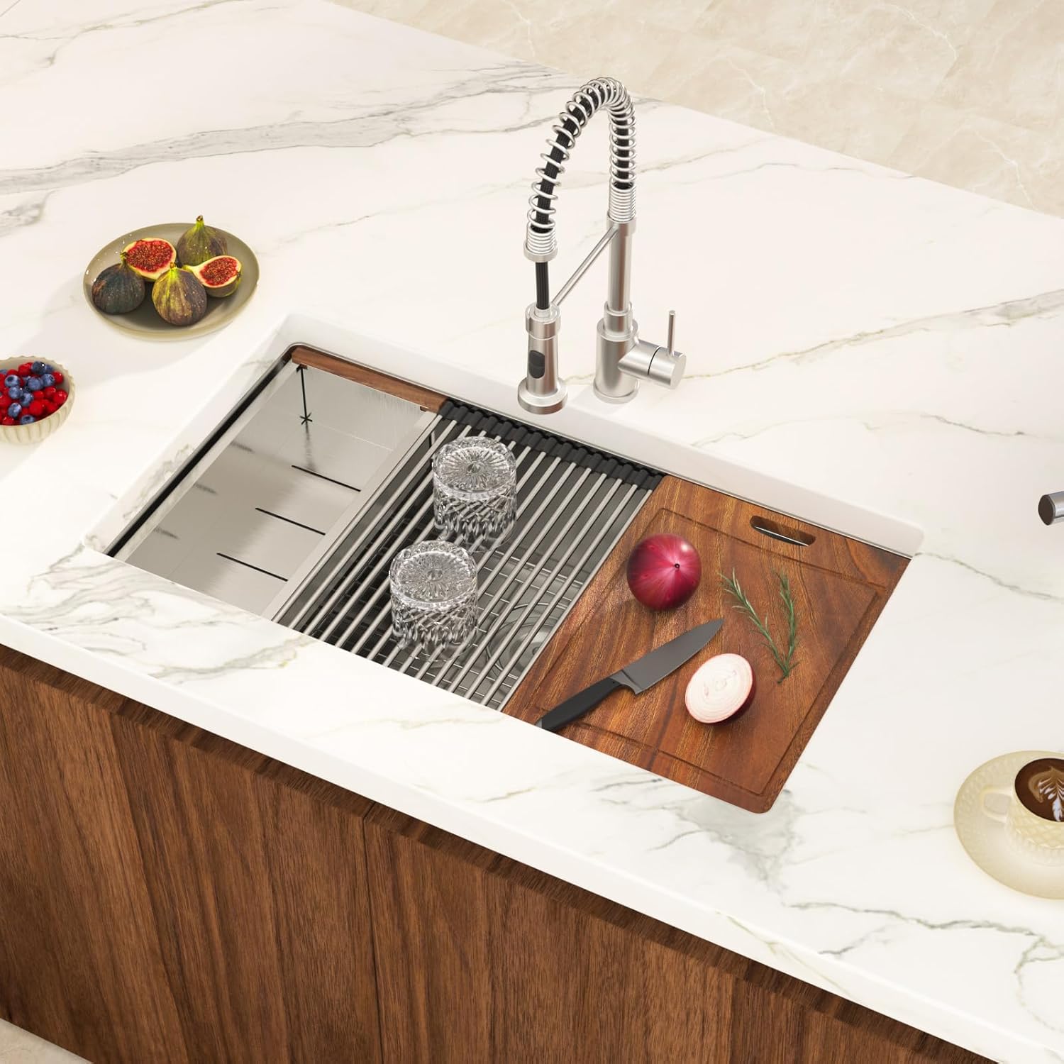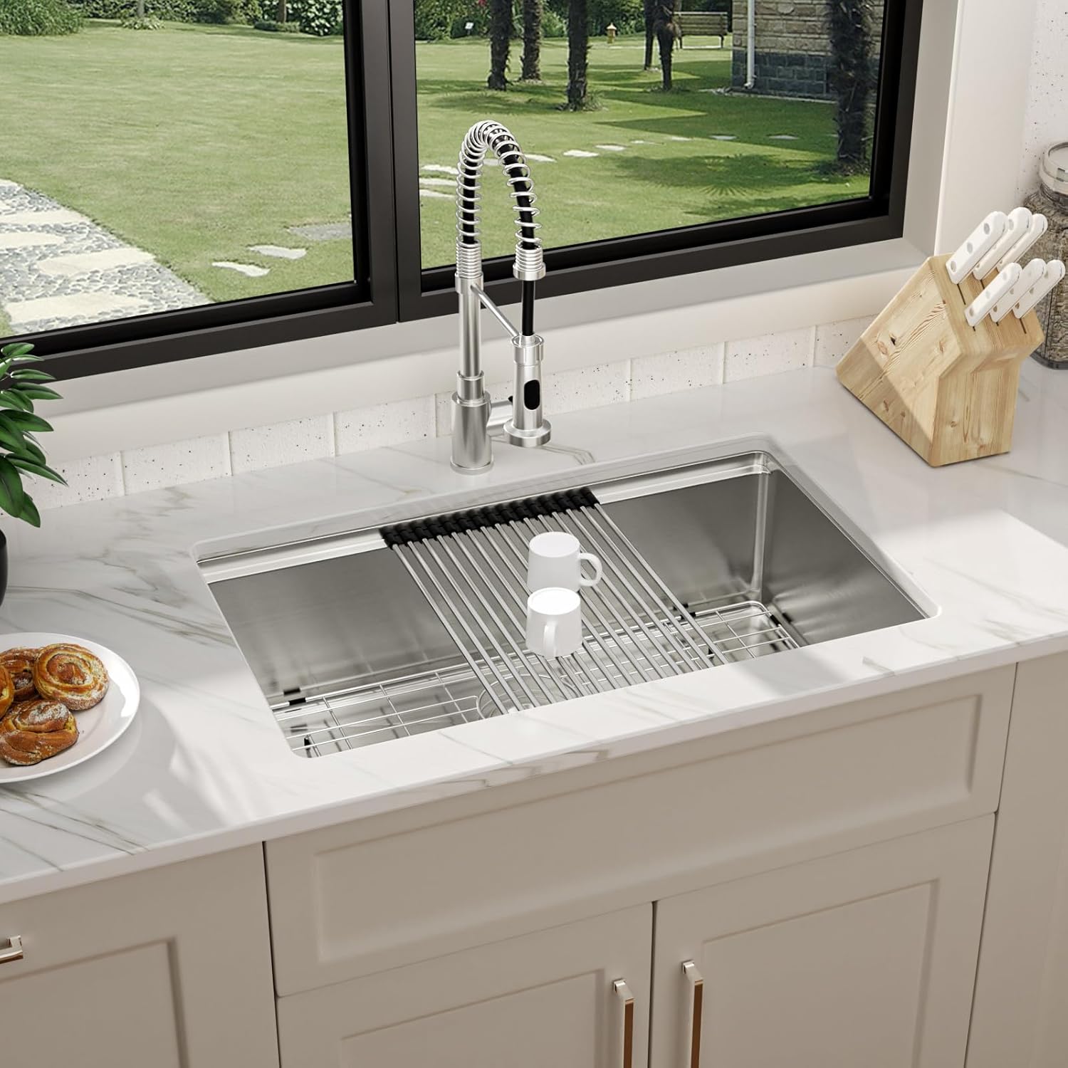 | Included Components | 30 Undermount Kitchen Sink, bottom grid & drain assembly, colander, cutting board, roll up rack |