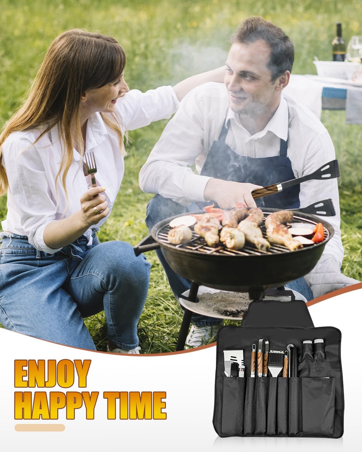 Introducing the MOXTOYU 37PCS Griddle Accessories Kit, your ultimate companion for outdoor grilling adventures! This comprehensive set includes everything you need to elevate your grilling experience. Crafted from premium 304 stainless steel, our grill accessories are not only durable but also safer than others on the market. Say goodbye to rust, bending, or breaking – our accessories are built to last, ensuring countless barbecues to come. Equipped with a handy BBQ thermometer, achieving the perfect level of doneness has never been easier. With temperature options in both Fahrenheit and Celsius, you can grill with confidence knowing your meat is cooked to perfection. Our multifunctional apron is designed for both convenience and practicality. Wear it during cooking sessions, then effortlessly fold it into a storage bag for your barbecue essentials. Lightweight and compact, it's the ideal companion for your outdoor grilling escapades. Featuring a 4-in-1 spatula with a built-in bottle opener, meat tenderizer, and serrated edges for cutting, our set ensures versatility and efficiency in your cooking endeavors. The included grill mats prevent delicate foods from sticking, while the cleaning brush makes maintenance a breeze. With its wood grain handle design, our 16-inch grill tool not only offers a comfortable, non-slip grip but also adds a touch of elegance to your grilling arsenal. Backed by our commitment to exceptional service, we provide one-on-one customer support, ensuring your satisfaction every step of the way. Experience the difference with the MOXTOYU 37PCS Griddle Accessories Kit – the ultimate set for grill enthusiasts everywhere.