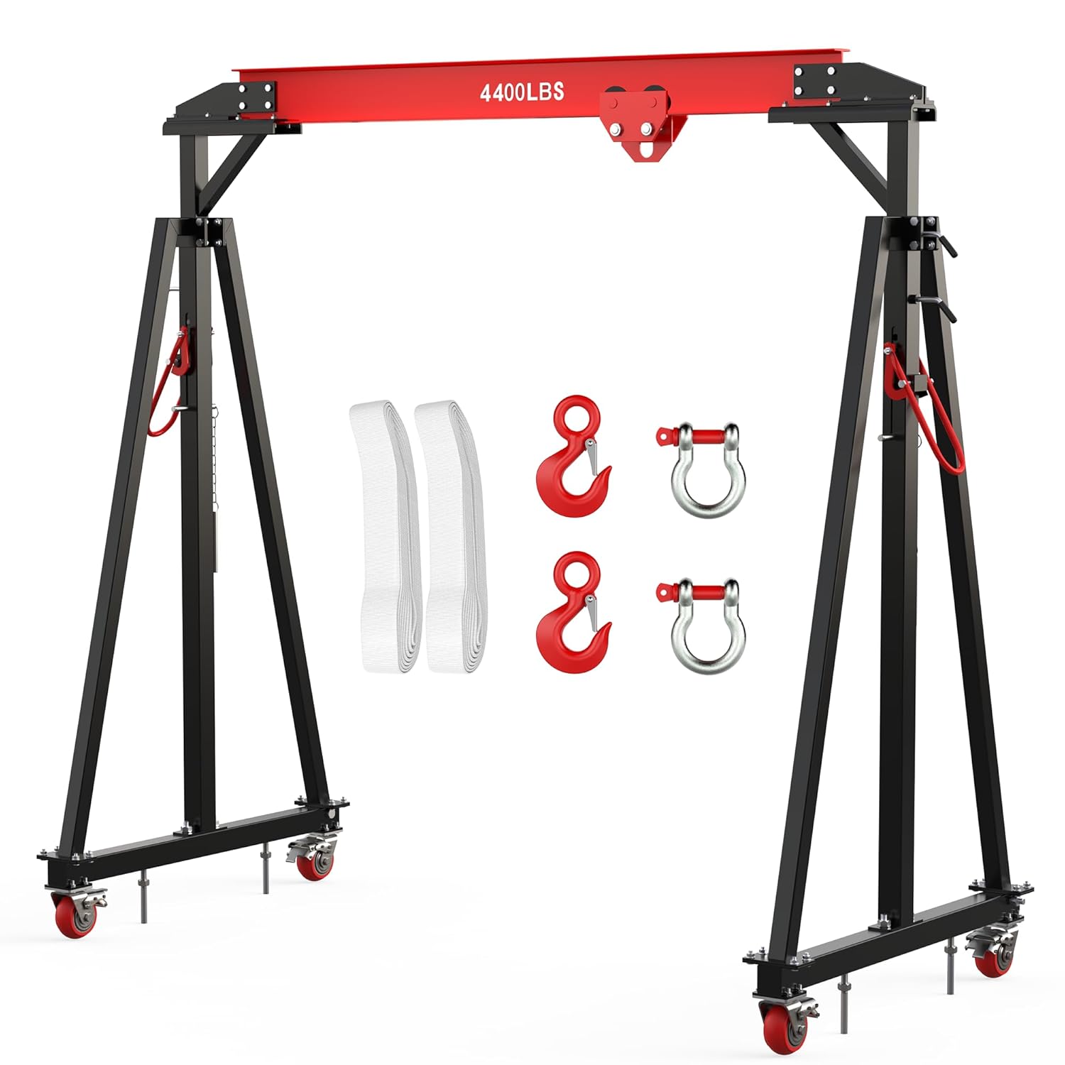 Adjustable Gantry Crane, 2 Ton 4400 LBS Capacity, Portable Gantry Crane Height Adjustable 97" to 141" with 12 Positions, for Factories, Warehouses, Construction, Auto Repair