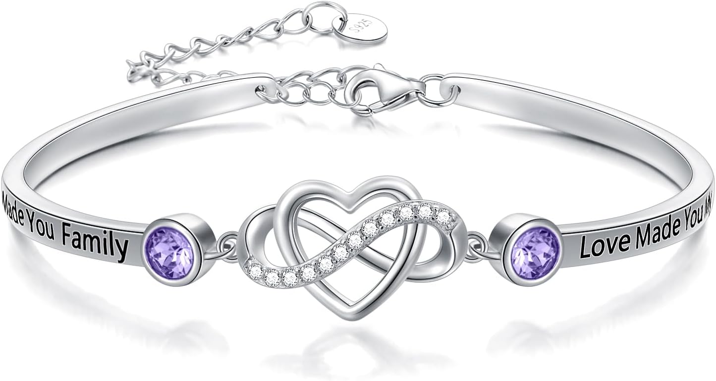 AOBOCO 925 Sterling Silver Adjustable Infinity Heart Bangle Bracelet for Sister Best Friend Daughter Mom Grandma Granddaughter Daughter in Law Godmother Goddaughter Stepmom Stepdaughter