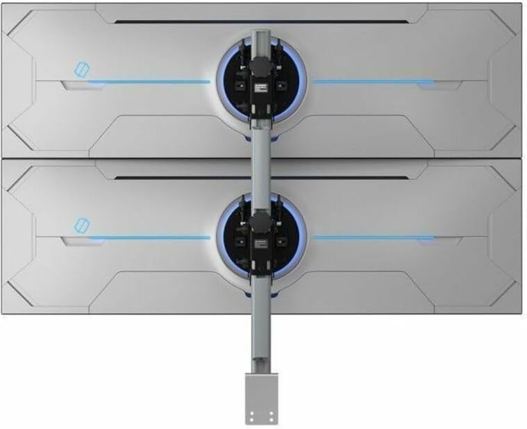 Super heavy duty dual mount & desk clamp,AWMS-2-BT75-H is a super heavy duty dual vertical monitor mount with heavy duty F-clamp desk fixing. It mounts two super ultrawide displays in a vertical stack configuration, including two Samsung 49" Odyssey G9 and Odyssey Neo displays. Compatible with 57" Odyssey Neo G95NC.,This mount is for high-performance computer setups used by gamers, software developers, traders, and designers. Any application with dense visual data will benefit from mounting two ultrawide displays with Atdec.,Choose me for:,Mounting two monitors stacked vertically,At least one monitor demands heavy duty capacity,Where you want to clamp to the desk & do not have a grommet drilled,Deploying multiple workstations at scale (business customers),Quick monitor connect & release, guided posts, & more fast install features