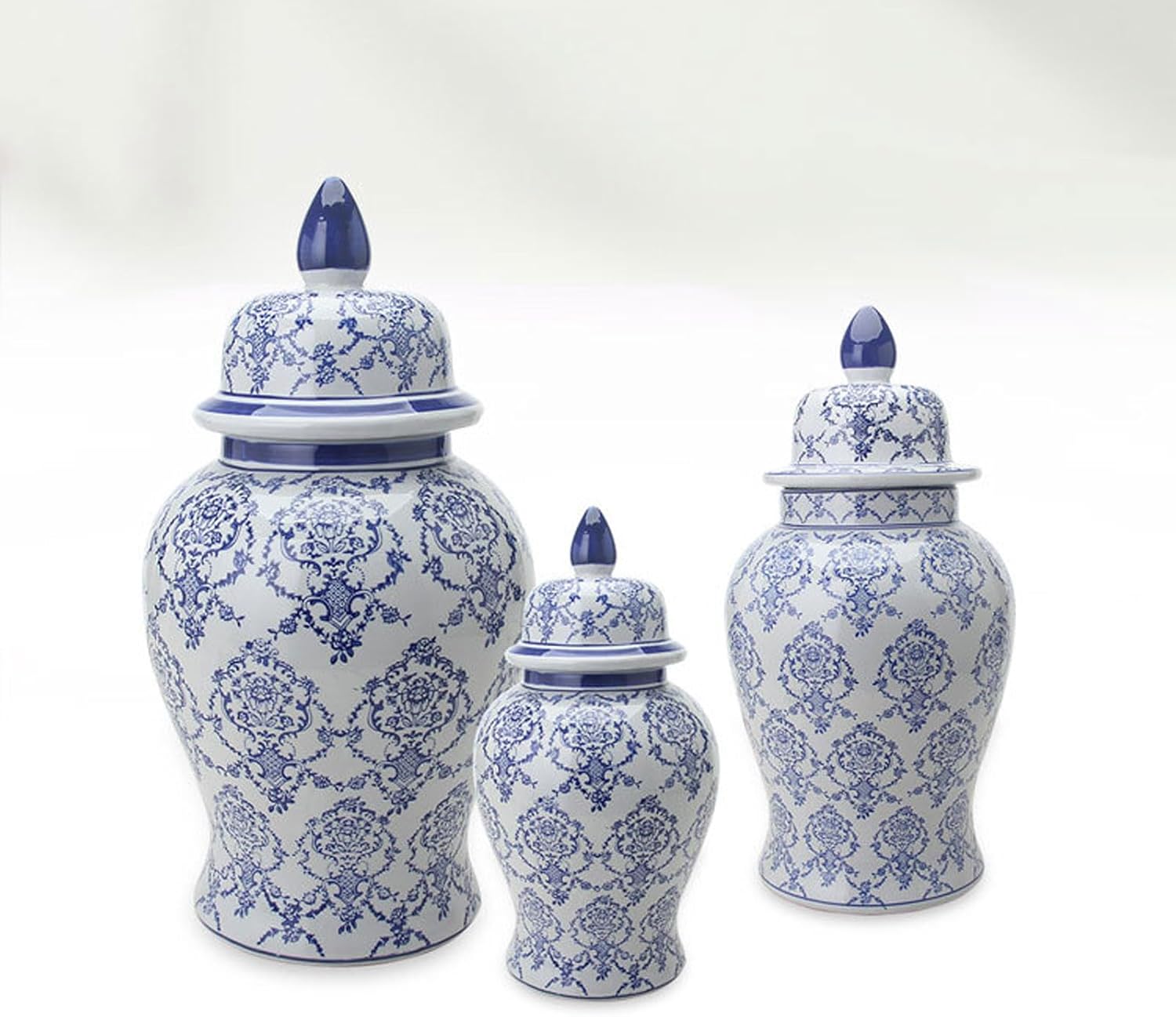 This home accent piece will brighten and liven up your room. Our decorative jar can be used as a beautiful center decoration of the dining table, and even can be used as a wedding center decoration of the dining table, as well as add a touch of fun and surprise to your home decor. Product Name: Ginger jars for home decor/Temple jar vase ornaments Product Material: Ceramic Product Color: As Shown Product Features: Handmade Product Size: 26x49cm,34x65cm,41x83cm Uses: Home Decor, vases, ge jars Package Includes: 1 Ceramic Ginger Jar Notes: The surface is uneven and the coating is uneven. This is normal and will not affect the use. Because of the difference in light, camera equipment and monitor, please pay attention to slight chromatic aberration. Because of the different measuring ways and tools, there might be 1-2 cm errors.