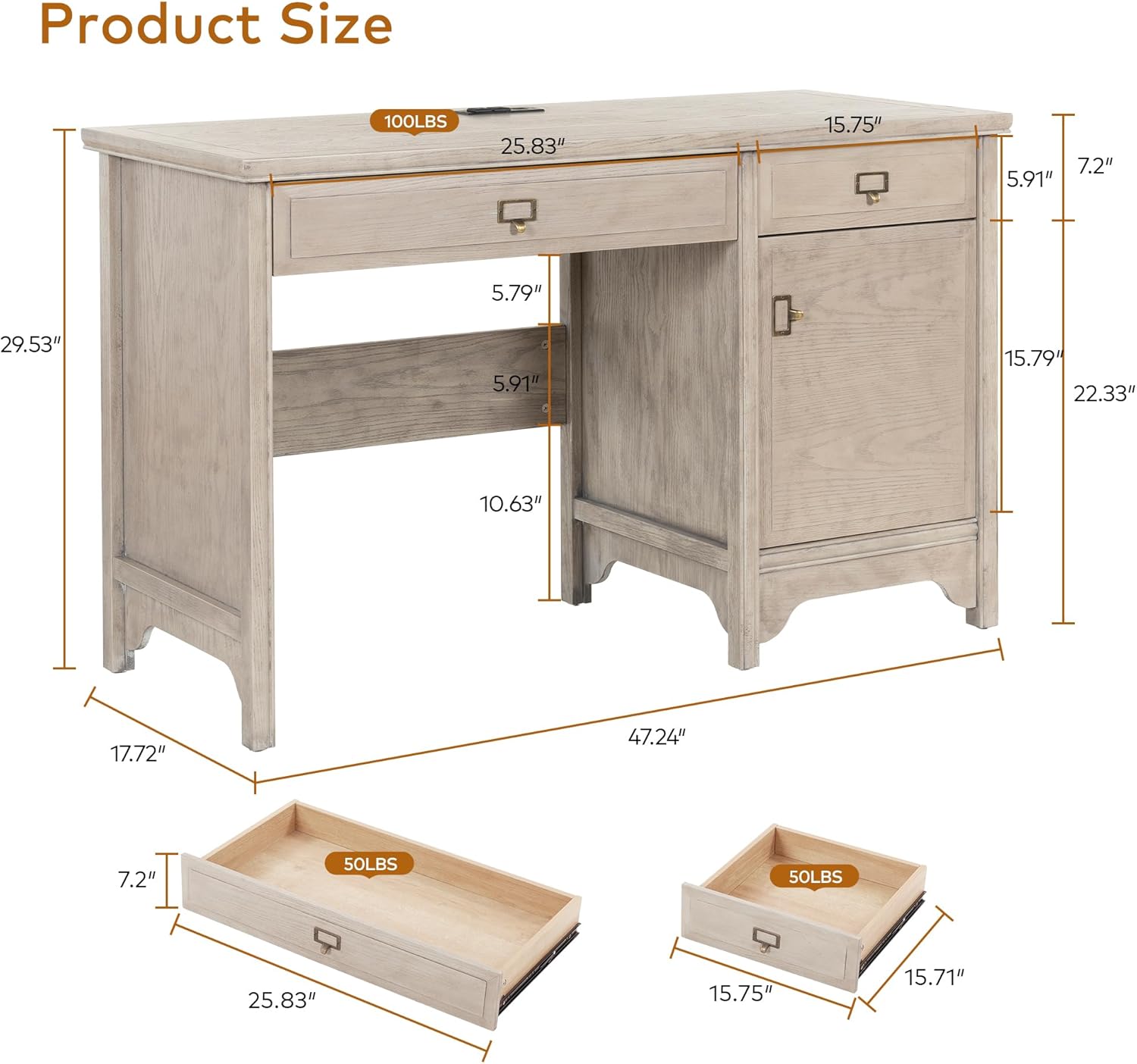 | Model Name | 47" Solid Wood Executive Desk |