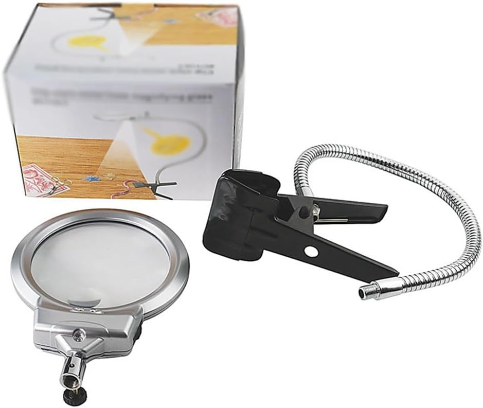 Convenient and clip on design.More convenient to use.Optical lenses prevent dizziness when viewed for a long time.High transparency and magnification provide a clearer and more comfortable visual experience.Low energy consumption, bright and comfortable lighting, and long service life.Product magnification: 2.25X/5XProduct material: ABS, metal, acrylic lensesColor: ASize: 330*140*370mmBattery model: 3 No. 7 batteries, the product does not come with batteriesSpecification: Magnifier * 1 (excluding other display products)Tip:Due to differences in manual measurement and measurement methods, slight errors may occur. Please refer to the actual product for accuracy2. Due to differences in computer screens and monitors, the actual color may slightly differ from the image. Thank you for your understanding!Built-in high precision light sensor module.