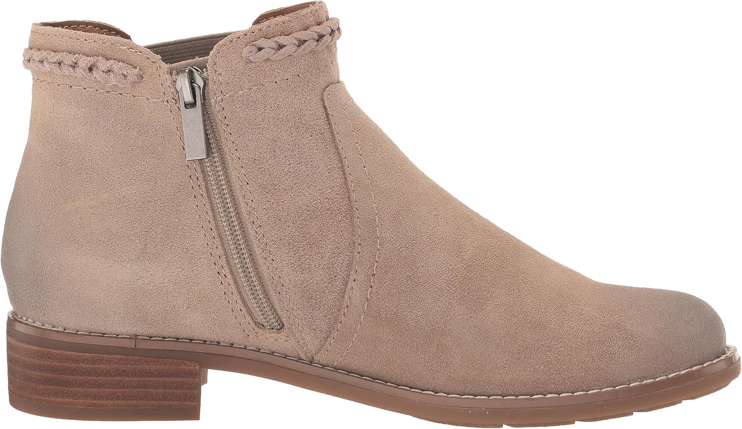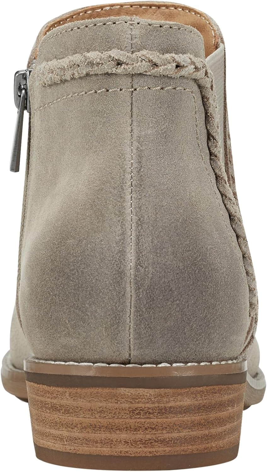 Supreme comfort, responsible design, effortless style, the earth® Nika casual bootie features a round toe, woven trim details with a stacked low heel. Plus, it offers arch support and elastic gores on the side of the bootie for a flexible fit. Extraordina