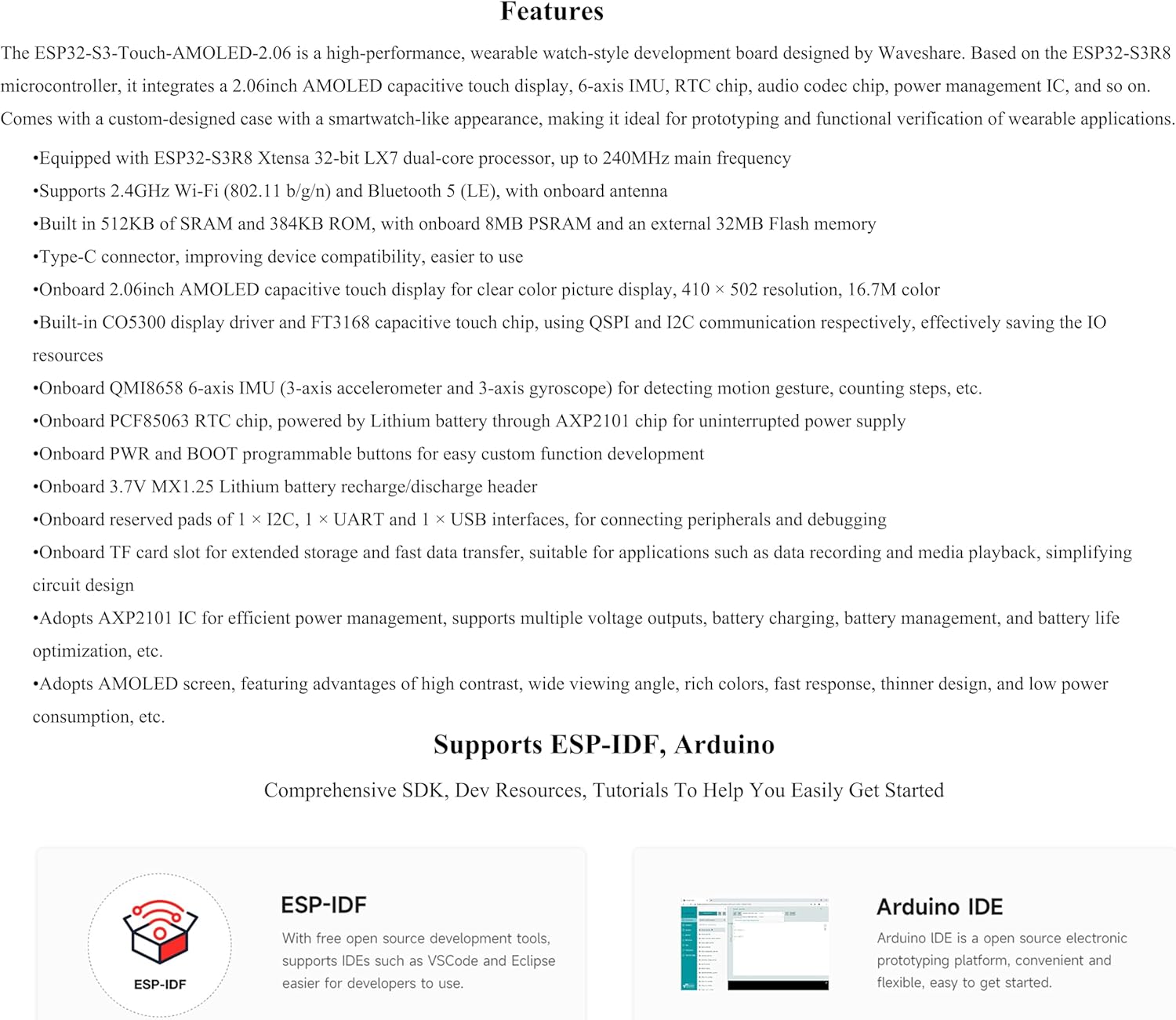 | Model Number | ESP32-S3-Touch-AMOLED-2.06-EN |