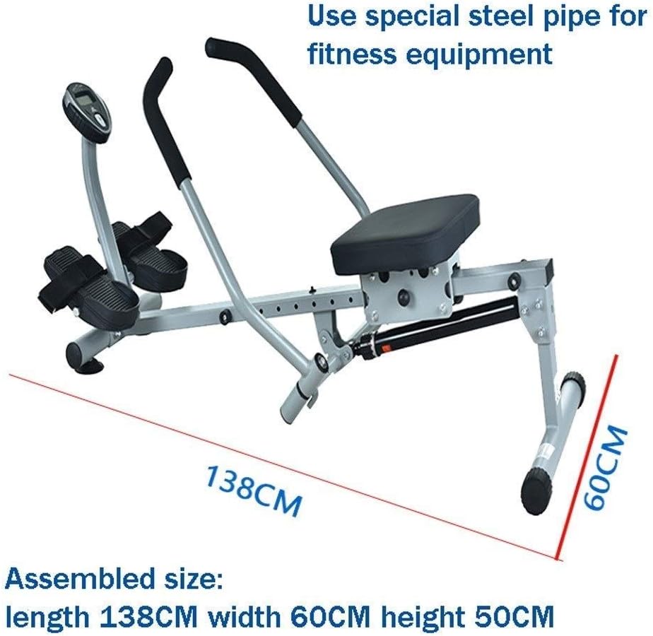 ? Hello, dear friend, Are you worried about not being able to go to the gym and want to exercise at home? are you still choosing the right fitness equipment? Your vision is so great! Rowing machine exercise is a smooth, fun and challenging fitness exercise. Rowing machine is a device that simulates rowing. It has a good effect on muscle strengthening of the legs, waist, upper limbs, chest and back. This low-impact exercise offers a great full body workout. The highlights of our Rowing machine: 1. Equipped with a comfortable, smooth running seat, and pivoting foot plates with adjustable foot straps for added comfort. 2. easily adjustable resistance make it easy to switch up your workout intensity quickly. 3. The LCD monitor displays: Time, Count, Total Count, Calories Burned, and Scan. ? Specifications: Product Type: Rowing Machine Pac: 138x60x50cm Product weight: about 22KG The main material of the product: steel Resistance levels: 12 levels Load bearing: 120 kg ? Notice - Please allow slight dimension difference due to manual measurement. - Please consider the actual sizes in the listing as the pictures are generally enlarged to show detail. - Due to different producing batches, product details might be a little different. If you minding the difference, please buy it carefully. - Due to the light and screen difference, the item's color may be slightly different from the pictures. Thanks for your understanding.