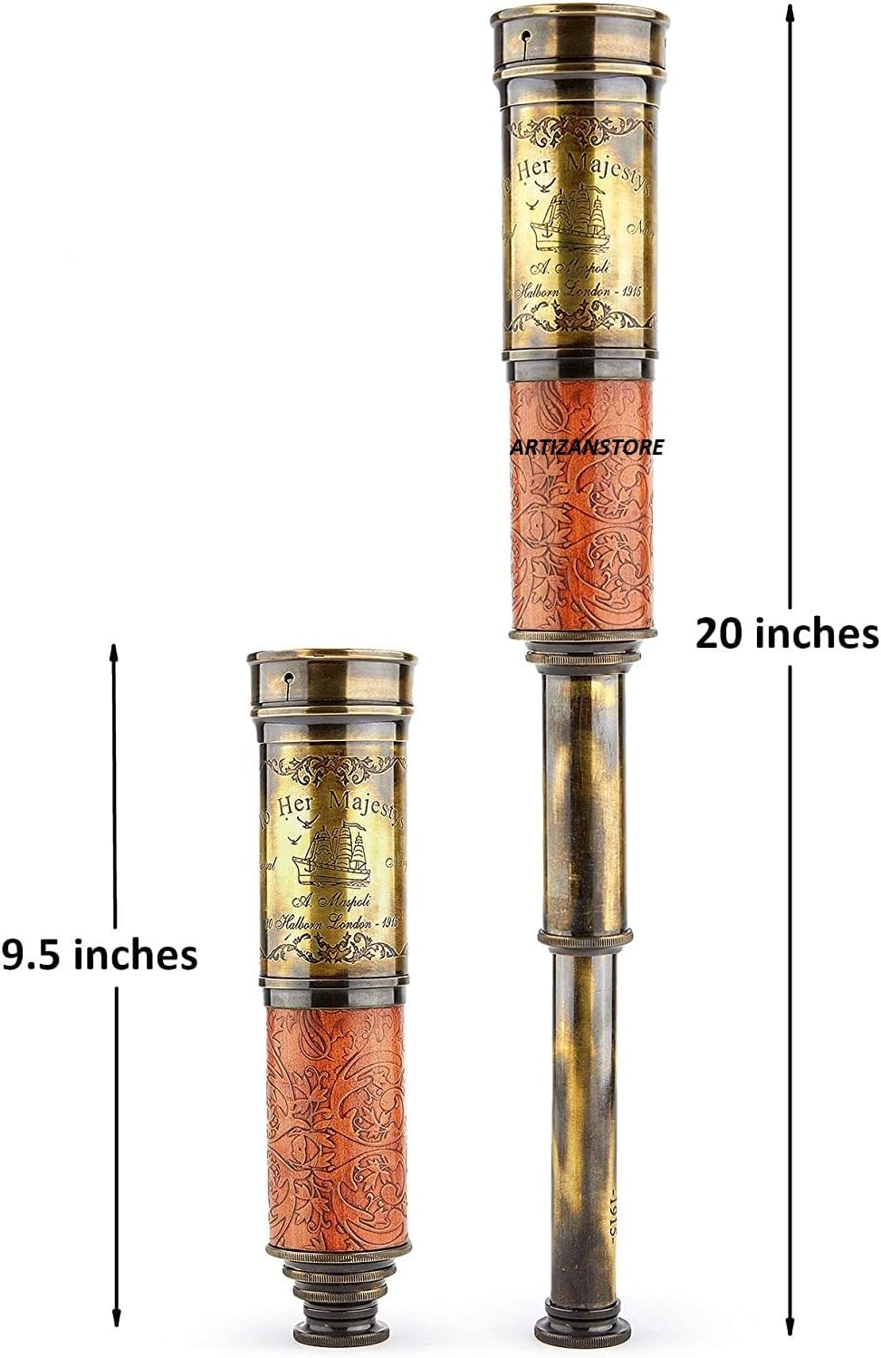 This is Fully Handcrafted Vintage Telescope. Antique Brass Telescope is made of Premium Grade Brass and leather. Designed with classic brass appearance, the spyglass is exquisite and elegant. Retro pirate monocular is cool and attractive enough. The golden compass included is in retro nostalgic style. Not only retro style, but also quite practical.