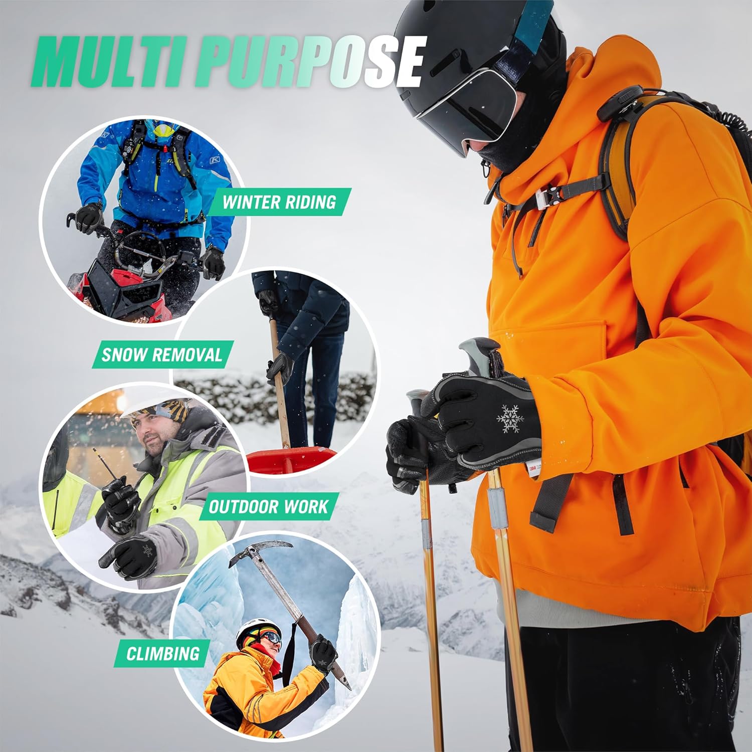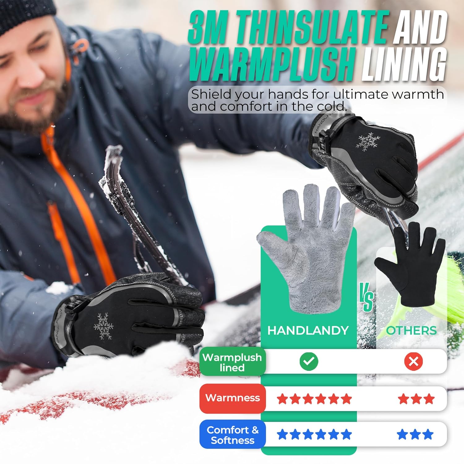HANDLANDY Waterproof Insulated Work Gloves, 3M Thinsulate Thermal Winter Gloves for Men Women Touch Screen, Warm Ski Snowboard Cold Weather Gloves (Black, Large)(Black-Grey PU, 2X-Large)