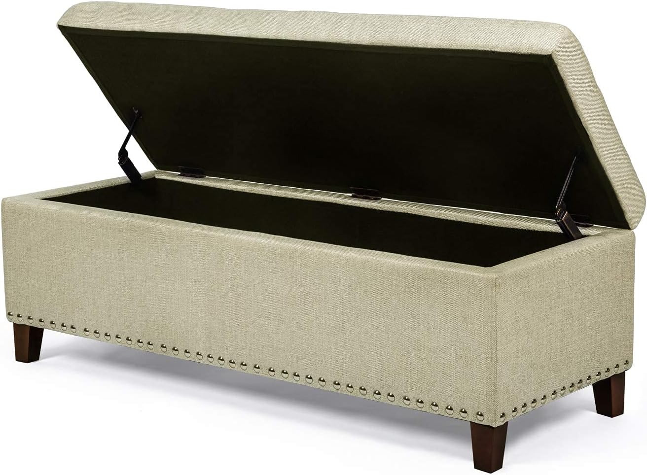 【Stylish Design】 Our storage bench features soft fabric upholstery with tufted top, accented with eye-catching nail-head trim around. It’s the perfect way to add traditional elegance to your living room