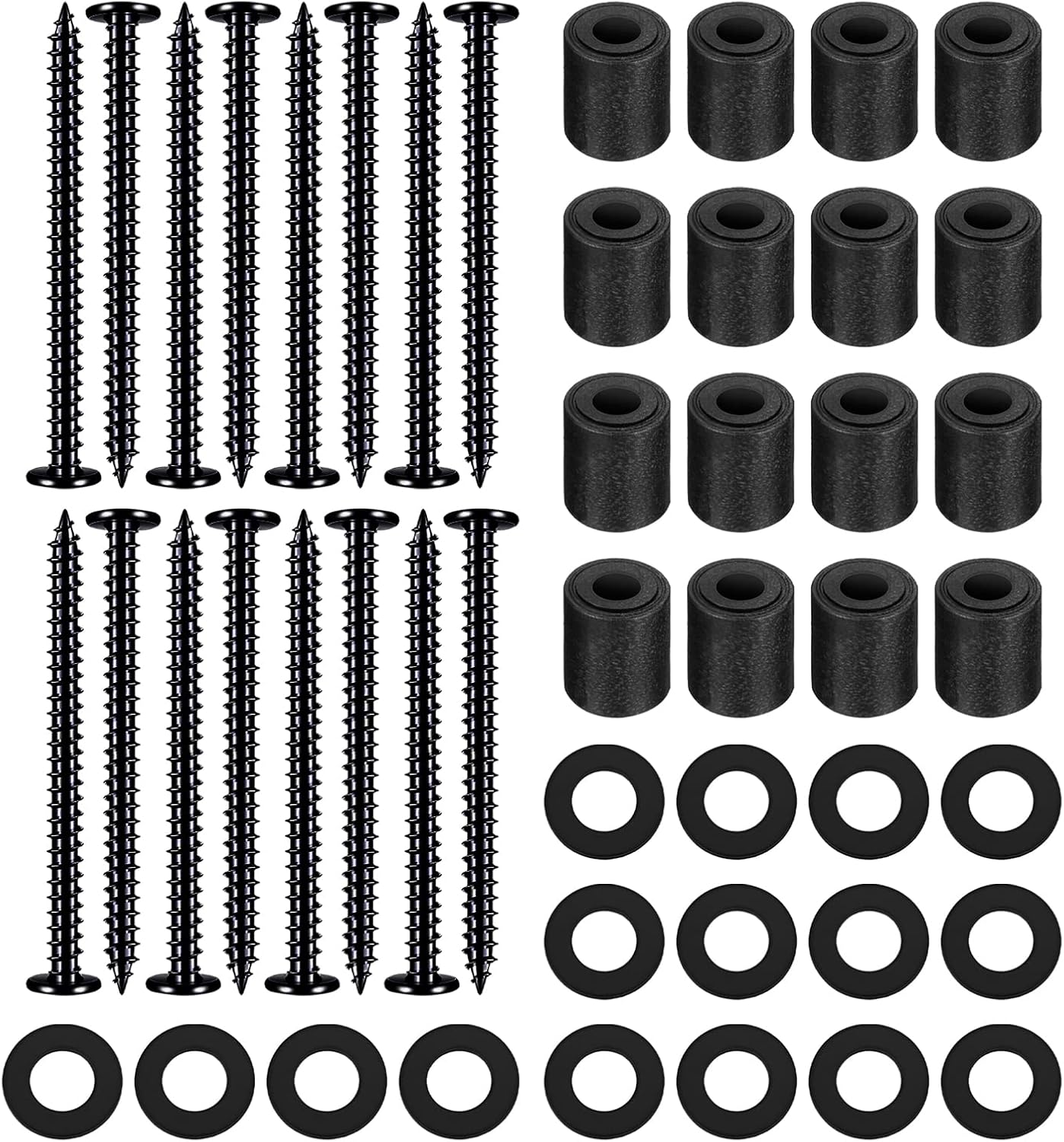 Easy to install, this kit made installing a pegboard much easy Specification: Material: steel and rubberSize: screw length 2in, spacer size 0.47"L*0.39"W Color: black Package includes: 96 x Screws 96 x Spacers 96 x Washers