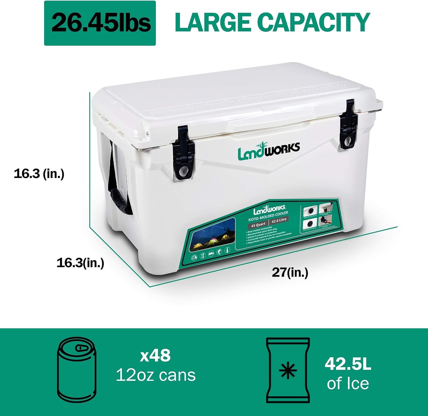 This Wood Chipper Shredder design comes with a EXTRA Large Hopper for MAX volume Chipping/Shredding up to 3" MAX branches/limbs to mulch all wood to a reduction ratio of 15:1 with an elongated top adjustable discharge chute. The engine is designed to ensure the operator's safety. Always operate machine according to directions in the user manual, always wear the appropriate hand & eye protection (ENGINE OIL NOT INCLUDED). This wood chipper comes with a 3-year limited. We have a dedicated customer support team stand behind our chippers, so you can trim your trees with ease knowing that we are always here for you. Rotomolded Coolers are the 'Cream of the Crop' in Technology for Commercial Grade Insulation. Our Cooler has 3" THICK Insulated Walls, All Round UV Protective Shell, Commercial Grade 360° D-Seal freezer Style 15mm Gasket (Trapping All Cold Inside), Recessed Zero-Leak Drain Plug, Molded Tie Down Slats & with 2 Impact Rubber Absorbing Ergonomic Grips on Each Side