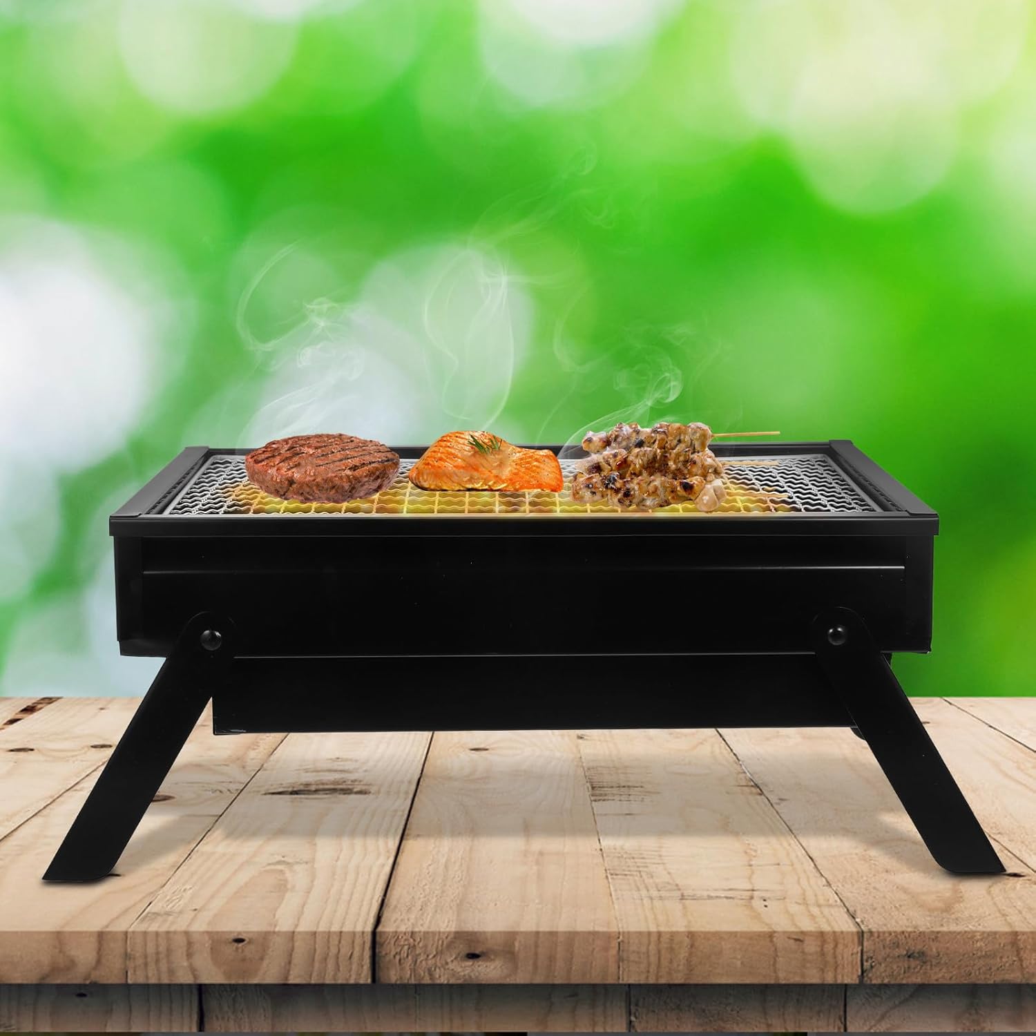 Package List 1 x Camping Grill Features -Color:Black -Size:35.00X22.00X16.50cm/13.76X8.65X6.48in -Product Info:Portable barbecue stove -Material:Steel, Stainless Steel -Note:This grill can prepare food for 1-3 people outdoor grill. -This grill features a foldable design that ensures it can be easily transported and stored, making it a good tool for outdoor adventures and storage spaces picnic grill rack. -The practical pullout charcoal case enhances the user experience by simplifying process of managing and cleaning charcoal, ensuring an easy grilling session outdoor camping barbecue grill. -Engineered for durability, this small grill is designed to deliver efficient cooking performance, making it ideal for small gatherings and outdoor events mini grill. -Essential for grilling enthusiast, this versatile grill is suitable for use in gardens, backyards, picnic, camping trips, and various other outdoor activities hiking grill. -A good choice for travel, allowing you to enjoy delicious grilled meals wherever your adventures take you roaster portable grill.Goods Informationsmall grill outdoor Our portable charcoal grill is a must-have for any outdoor enthusiast.convenient grill rack The compact and foldable design allows for easy transportation and storage, making it good for camping, picnics, and backyard barbecues.mini charcoal grill The creative pull-out charcoal holder makes adding and cleaning charcoal a breeze, ensuring a seamless grilling experience every time