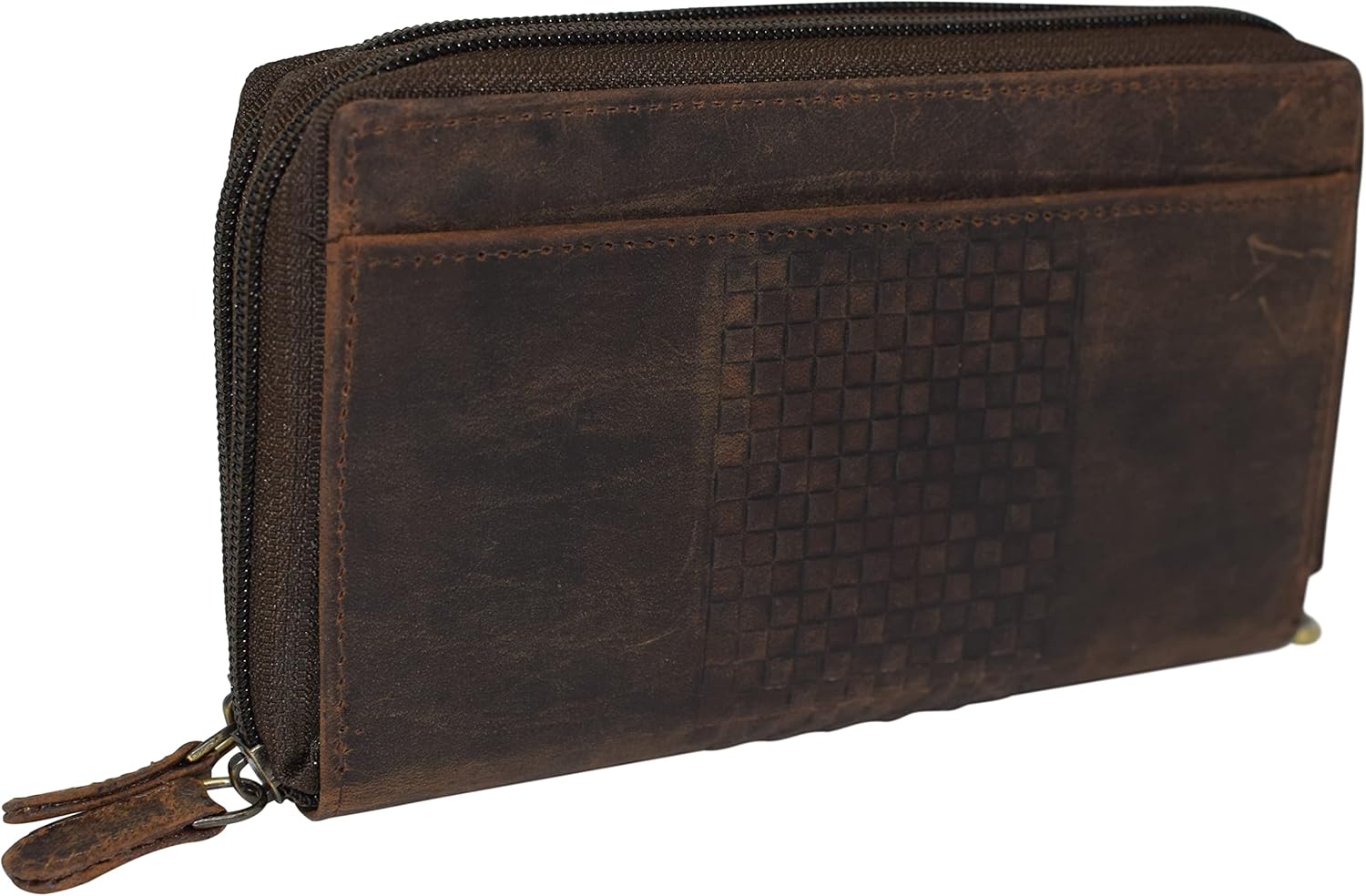 Genuine Leather Womens RFID Blocking Security Double Zip-around Indexer Phone Wallet