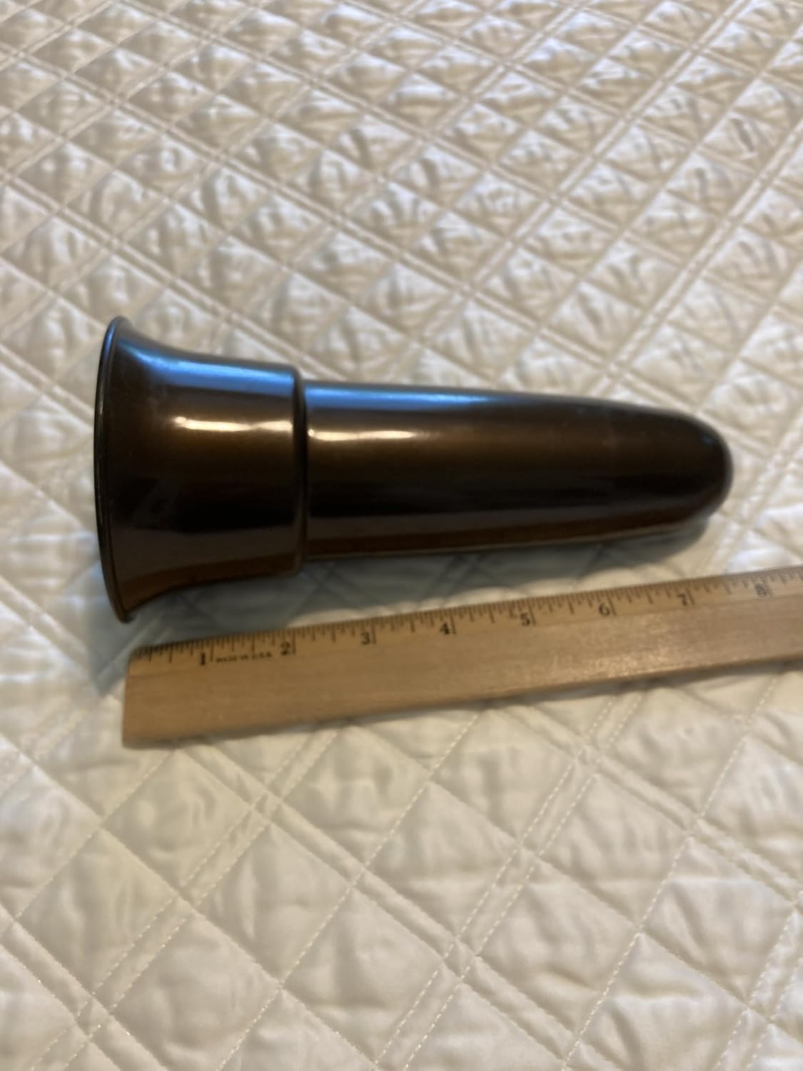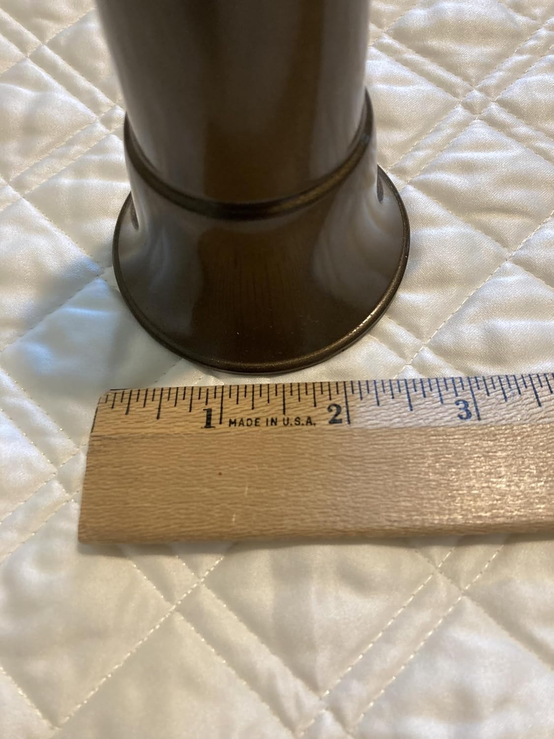 Royal Duchess (brand) Mausoleum / Crypt Vase (only) - Replacement Mausoleum Crypt Vase 5.5 inch (Vase Only) - Replacement vase Replacement vase ONLY - NO HARDWARE Vase is of durable high impact PLASTIC. Actual vase measurement is 5.5 inch tall x 2.5 inch vase mouth opening. IMPORTANT: Collar circumference 5 1/8 IN where support ring interacts. Metallic bronze color vase Vase of bronze strong solid PLASTIC looks attractive Injection molded PLASTIC vase Low cost plastic vase versus expensive metal Avoids threat of metal theft Classic design Great as a replacement vase Made in USA by Triple H CAUTION contact mausoleum operator as guidelines may apply. Returns subject to restock fee. For do-it-Yourselfer's ... Crypt or Niche flowers (sold separately) may be inserted into (Mausoleum Crypt Vase 5.5 inch - Ring Support) crypt vase as pictured . Add Styrofoam block as base to Crypt and Niche flowers. Trim Styrofoam block as needed for insertion into pictured vase. Trim to fit snugly. Avoid loose fit to ensure some degree of permanency for flowers as silks (actually polyester and/or polyester blend petals) ... especially in an indoor location can last indefinitely. Silk flowers when kept indoors.., crypt vase, mausoleum or niche use, are practically immune to sun fading, UV light, and weather concerns. OPTIONAL -- DIRECT GRAVE SITE PLACEMENT REQUIRES CONCIERGE SERVICE; includes delivery, placement, photo verification and/or certification CONCIERGE SERVICE DELIVERY FORM REQUIRED Pricing: basic Concierge Service $59.00 (Sale $44.00) plus Silk and/or Fresh