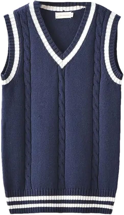 Material: Polyester, CottonApplicable Seasons: Spring And AutumnApplicable Scene: LeisureHooded: NoneDecoration: NoneSleeve Type: RegularWool: Standard WoolOrigin: China (Mainland)Pattern Type: StripesProduct Type: Vest, SleevelessSleeve Length (Cm): SleevelessThickness: ThickTechnology: Computer KnittingCollar: LapelStyle: College StyleGender: MaleClosure Type: None