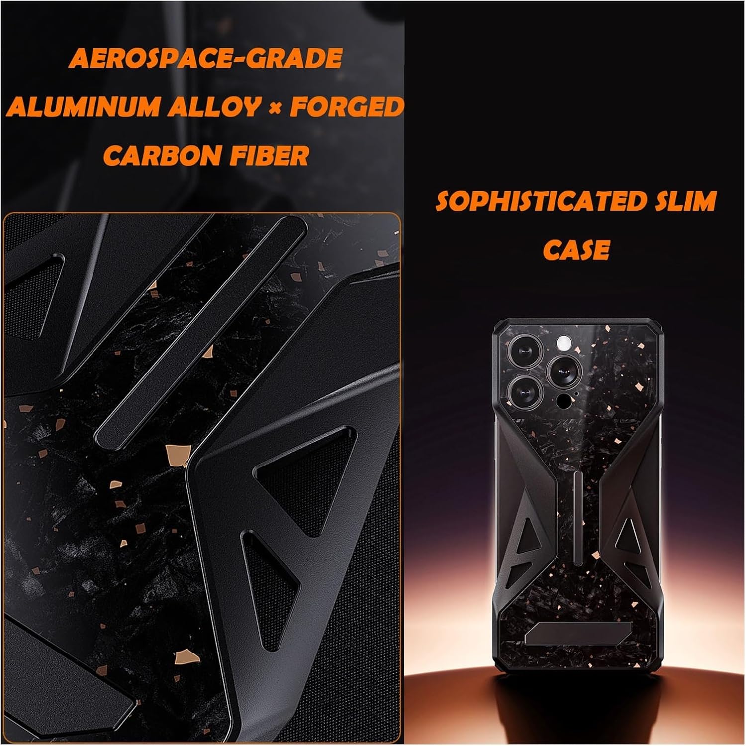 Why Choose This Carbon Fiber CaseYour Phone 16 Pro Max deserves protection that matches its premium build. This rugged metal case combines military-grade drop protection, aerospace aluminum alloy frame, and forged aramid fiber back—delivering uncompromising strength in a slim, lightweight design. Perfect for those who want durability without bulk.Key Features🔒 Military-Grade Drop ProtectionEveryday drops are no longer a worry. Reinforced corner bumpers and raised bezels (2mm above the screen, 1mm above the camera) shield your Phone against scratches, shocks, and accidental impacts.⚡ Forged Aramid Fiber BackUnlike ordinary carbon fiber printing, the forged aramid fiber features naturally flowing textures that form a 3D tactile pattern. It is stronger, scratch-resistant, and adds a premium minimalist style.🛡 Aerospace Aluminum Alloy FrameEngineered with aircraft-grade aluminum, the slim metal bumper is ultra-tough yet lightweight. Its seamless embedded design ensures precise fit without looseness, delivering protection and elegance in one.🌬 Slim & Heat DissipatingThe hollow airflow construction enhances heat dissipation, keeping your device cool during gaming, video calls, and long daily use.👌 Ergonomic Grip & Bare-Hand FeelThe tapered edges and matte finish offer a skin-friendly grip that feels close to holding your phone naked. Minimalist, modern, and designed for both men and women who value style and comfort.What’s in the Box1 × Rugged Metal Case for iPhone 16 Pro/16 Pro Max 1 × Free Privacy Tempered Glass Screen Protector (extra safeguard for your screen)Perfect For✔️ Business professionals who want premium rugged style✔️ Tech lovers who value heat dissipation & slim design✔️ Everyday users who need drop protection without bulk✔️ Minimalists who want a forged aramid fiber + metal fusion lookOur GuaranteeWe stand behind every case we make. If you encounter any issue, simply contact us. Your satisfaction is 100% guaranteed—shop with total confidence.