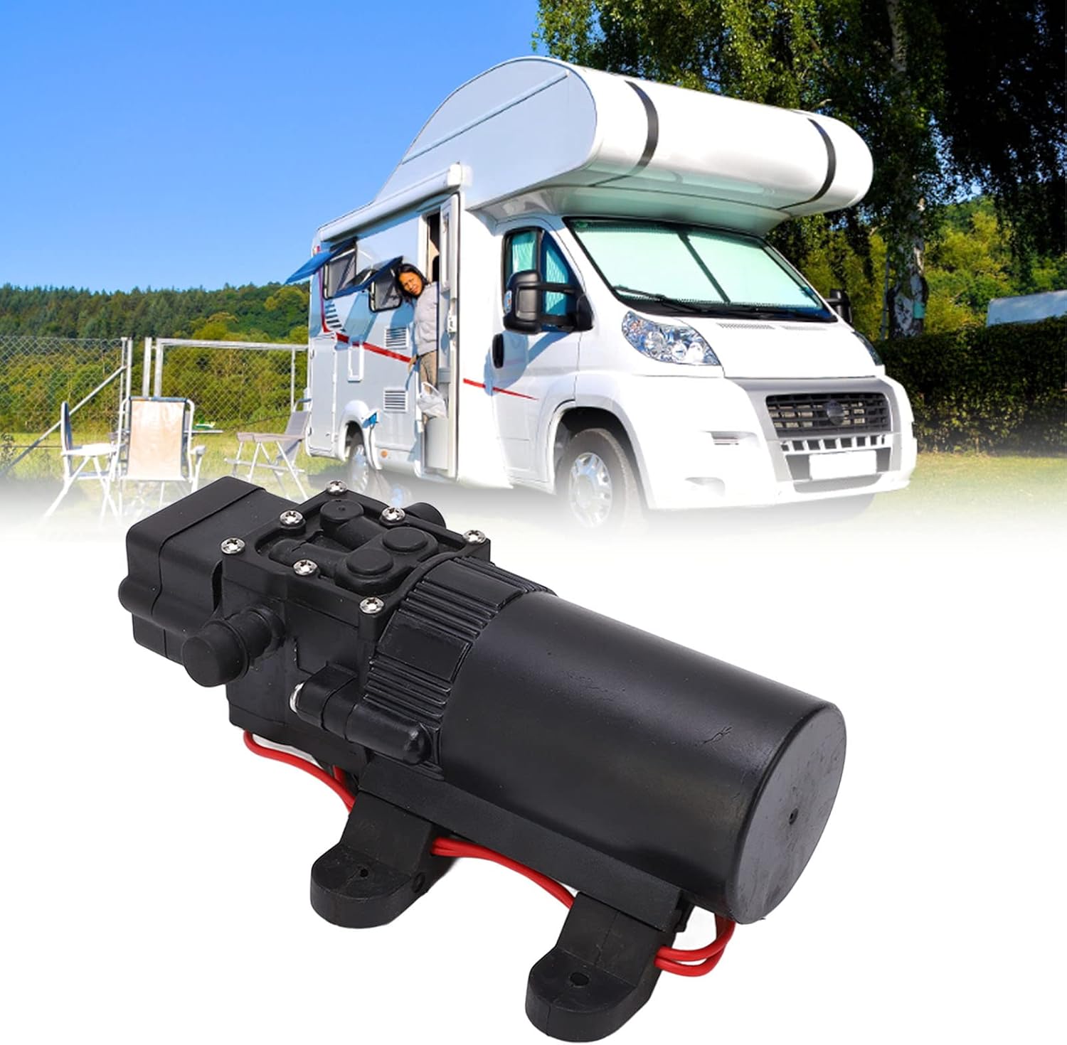 Specification: Item Type: DC Diaphragm Pump Material: Copper, Polyamide Resin, Rubber Discharge Head: Approx. 40 meter / 131.2ft Pressure: 70PSI cut off Interface Aperture: 3/8in (10mm) : 0.7GPM (2.6LPM) Maximum Liquid Temperature: 60℃ Typical Uses: Agricultural spraying, general industry, yachting, RV, water treatment, beverage, foodservice, distillation equipment Package List: 1 x Micro DC Pump