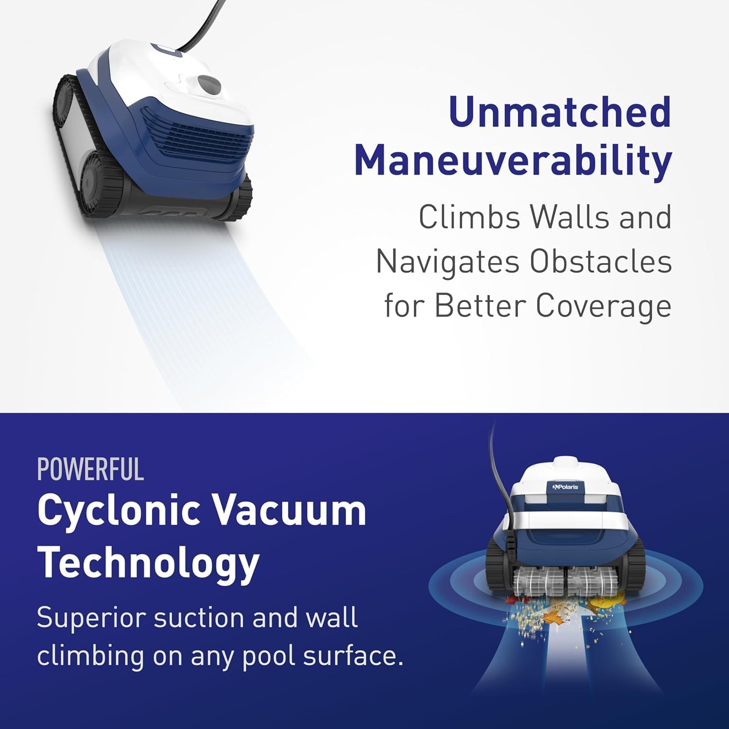 The Polaris ERA 820 Robotic Cleaner offers effortless cleaning for in-ground pools, climbing walls and scrubbing surfaces with powerful dual-traction brushes. Cyclonic Vacuum Technology ensures consistent suction, while the canister allows for easy debris removal. With a 60-foot cable and tangle-reducing swivel, plus an included transport caddy and cover, pool maintenance has never been simpler.