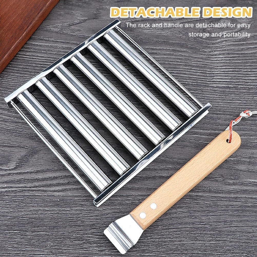 Engineered for grilling enthusiasts, this premium stainless steel sausage roller transforms outdoor cooking experiences. The commercial-grade construction withstands high heat up to 450°F while maintaining structural integrity, ensuring years of reliable service. Its innovative 5-sausage capacity allows efficient meal preparation for gatherings, with the non-stick surface guaranteeing perfect grill marks without messy cleanups.The extended wooden handle features smart ergonomics, keeping hands safely distanced from heat sources while providing optimal control when rotating sausages. A practical hanging rope attachment enables vertical storage to save precious kitchen space. Designed for versatility, the quick-release mechanism separates the heavy-duty grill rack from the handle in seconds, making it compact enough for camping trips yet sturdy enough for daily backyard use.Heat distribution channels create restaurant-quality results whether you're roasting hot dogs, warming tortillas, or preparing veggie skewers. The polished surface resists stubborn food residues while meeting food safety standards. Measuring 36cm total length when assembled, this lightweight yet durable tool comes ready to elevate your BBQ game at tailgate parties, beach cookouts, or family reunions.