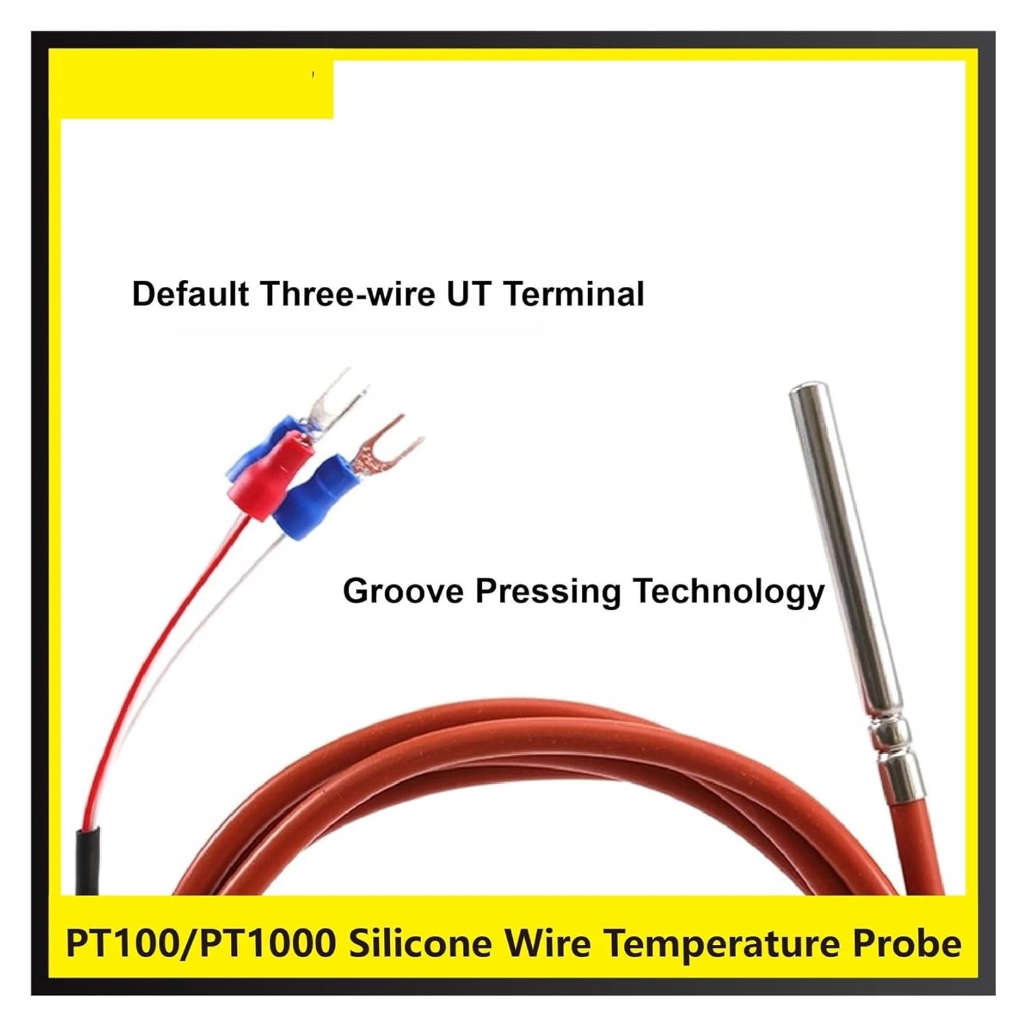 1.NOTEDefault Parameters:Graduation: PT100Probe Size: 5mm (D) * 50mm (L)Cable Length: 1-5mCable Material: Silicone WireCores: 3-core,U-type TerminalTemperature Resistance: -50~200°C"Customizable Options:"Graduation: PT1000Probe Diameter: Custom (4mm, 6mm, 8mm, etc.)Probe Length: Custom (100mm, 150mm, 200mm, etc.)Cable Length: Custom (10m, 15m, 20m, etc.)Cable Material: Silicone WireCores: 2-core / 4-core2.ParametersParameterSpecificationTemperature Range-50°C to 200°CResistance TypePT100 (default) / PT1000 (customizable)Probe Size5×50mm (customizable)Cable Length1-5m (customizable up to 20m)Cable MaterialSilicone-insulated wireWire Core3-core (default), 2-core/4-core (customizable)Probe MaterialStainless steel3. FeaturesWaterproof & Oilresistant Ensures durability in harsh environmentsHigh Temperature Resistance Operates in a wide range from -60°C to 260°C.High Sensitivity & Fast Response Imported chip for accurate and quick measurementCustomizable Design Various probe sizes, cable lengths, and wire cores available.Durable Stainless Steel Probe Provides long-term stability and reliability.4.ApplicationsIndustrial Equipment Temperature monitoring in machines and devices.Industry Accurate temperature measurement in harsh environments.Petroleum & Metallurgy Suitable for hightemperature monitoring in oil and metal refiningIndustry Precise temperature control in applications.5.FAQsQ1: Can I customize the probe size and cable length?A1: Yes, we offer custom probe sizes (4mm, 6mm, 8mm, etc.) and cable lengths Q2: Is this sensor suitable for outdoor use?A2: Yes, the waterproof and oil-resistant design makes it ideal for outdoor and industrial environments.Q3: Does it support two-wire or four-wire configurations?A3: The default is a three-wire design, but we also provide two-wire and four-wire options upon request.Origin : Mainland ChinaTemperature Range : -50°C to 200°CResistance Type : PT100 (default) / PT1000 (customizable)Probe Size : 5-50mm (customizable)Cable Length : 1-5m (customizable up to 20m)Cable Material : Silicone-insulated wireWire Core : 3-core (default), 2-core/4-core (customizable)Probe Material : Stainless steel