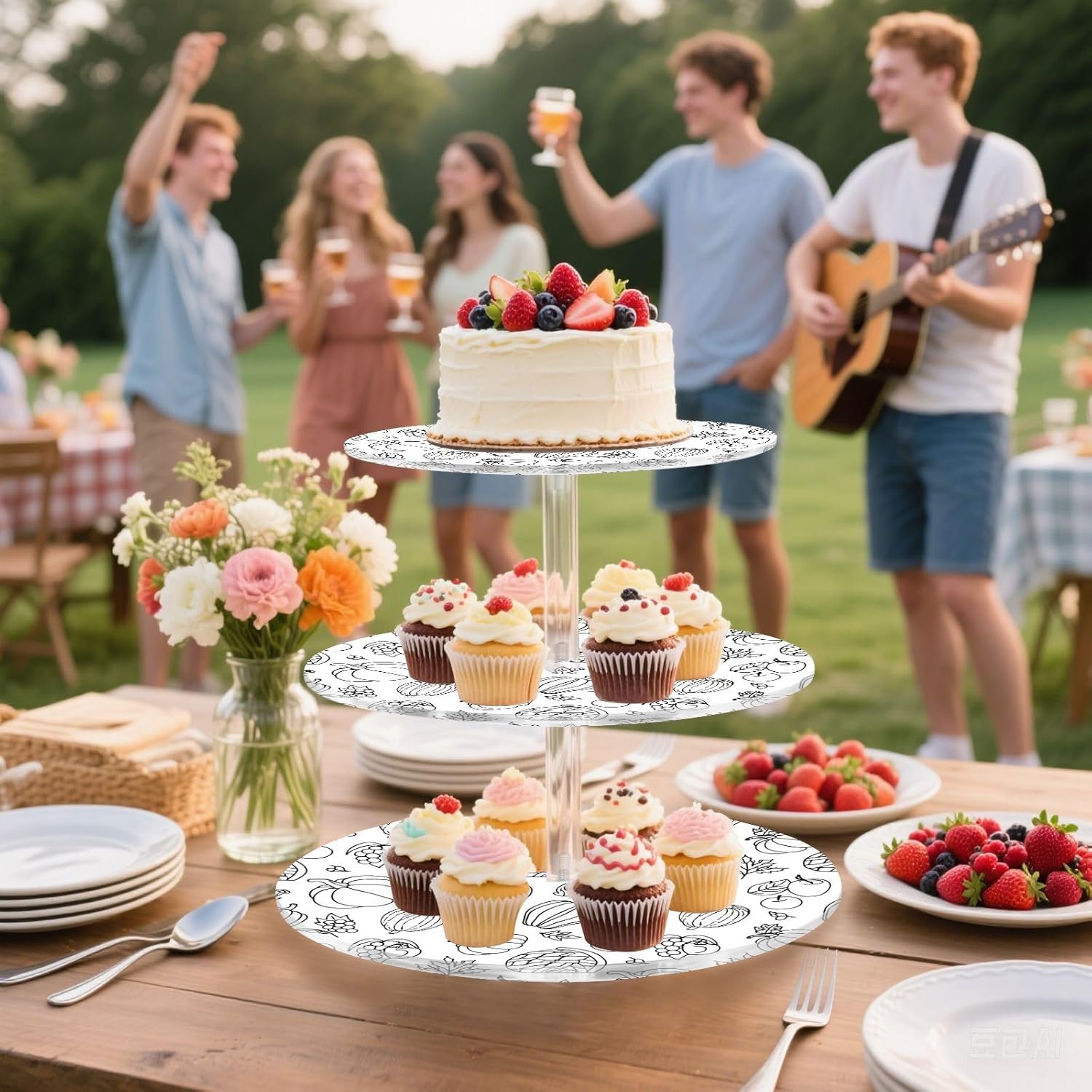 3 tiers round cupcake stand,acrylic cake tower stand holder macaron display rack cookie candy buffet desserts platter with non-slip and stable base for wedding, birthday, theme party. Due to the difference between different monitors,the picture may not reflect the actual color of the item,Please allow the slight color difference! We always doing our best to provide the best service and reliable products for every customer,Thank you very much! Have a good day!