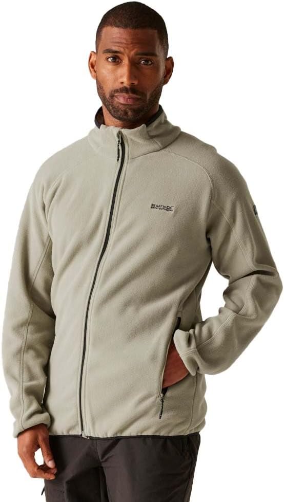 The Hadfield men's fleece from Regatta will get you set for the outdoors. The men's fleece is made with hardwearing polyester microfleece for lasting wear and streamlined design. The stretch binding to the cuffs and hem locks out the elements. The zip-up fleece is perfect for camping and walks in the countryside.