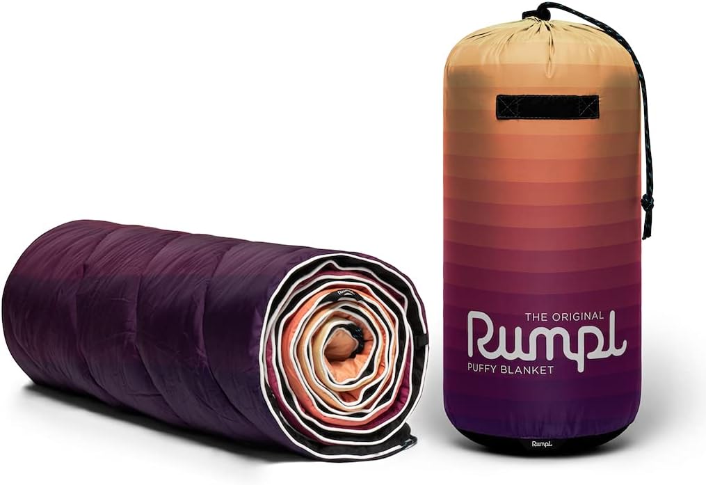 Rumpl Original Puffy Blanket - Warm, Water-Resistant Camping Blanket with 100% Recycled Synthetic Insulation, 52"x75", Original Puffy V1, Dawn Pixel Fade