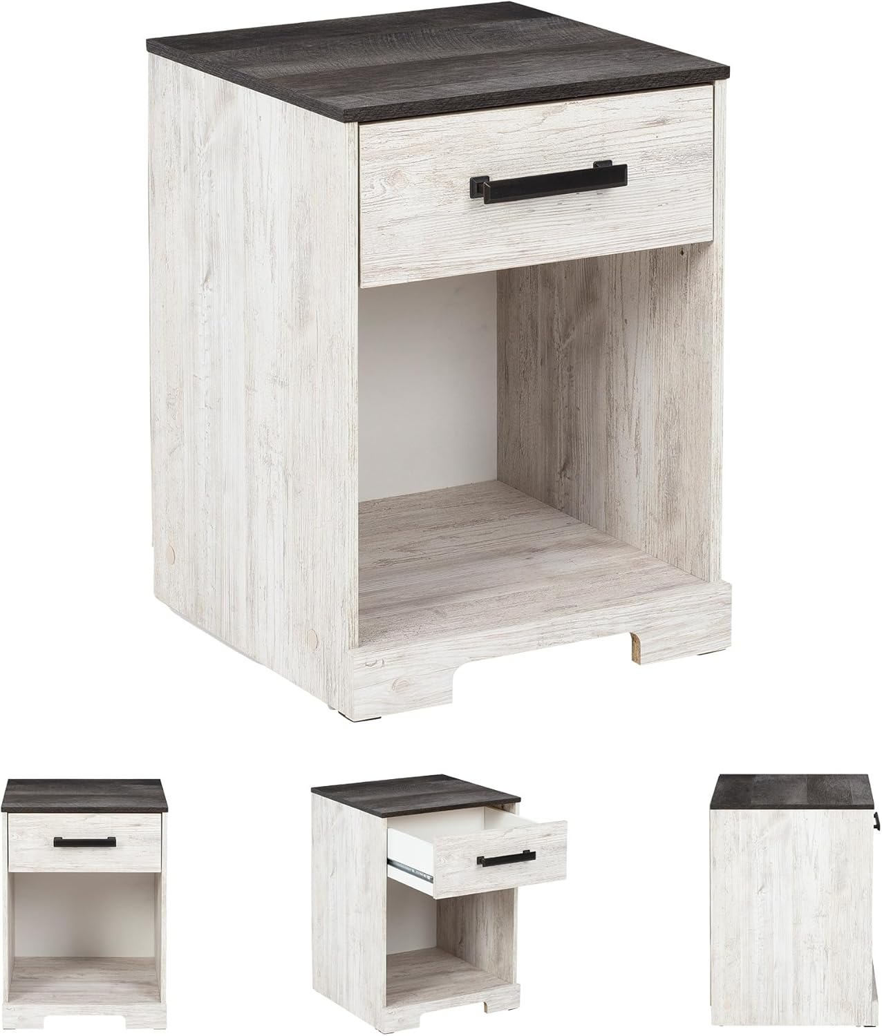 Give provincial a new meaning with the chic look of the Shawburn nightstand. A two-tone finish keeps this piece light and fresh, while the warm pewter-tone hardware adds an industrial touch. The open cubby provides display space or accommodates a storage bin to add a delightfully homespun charm to your space.
