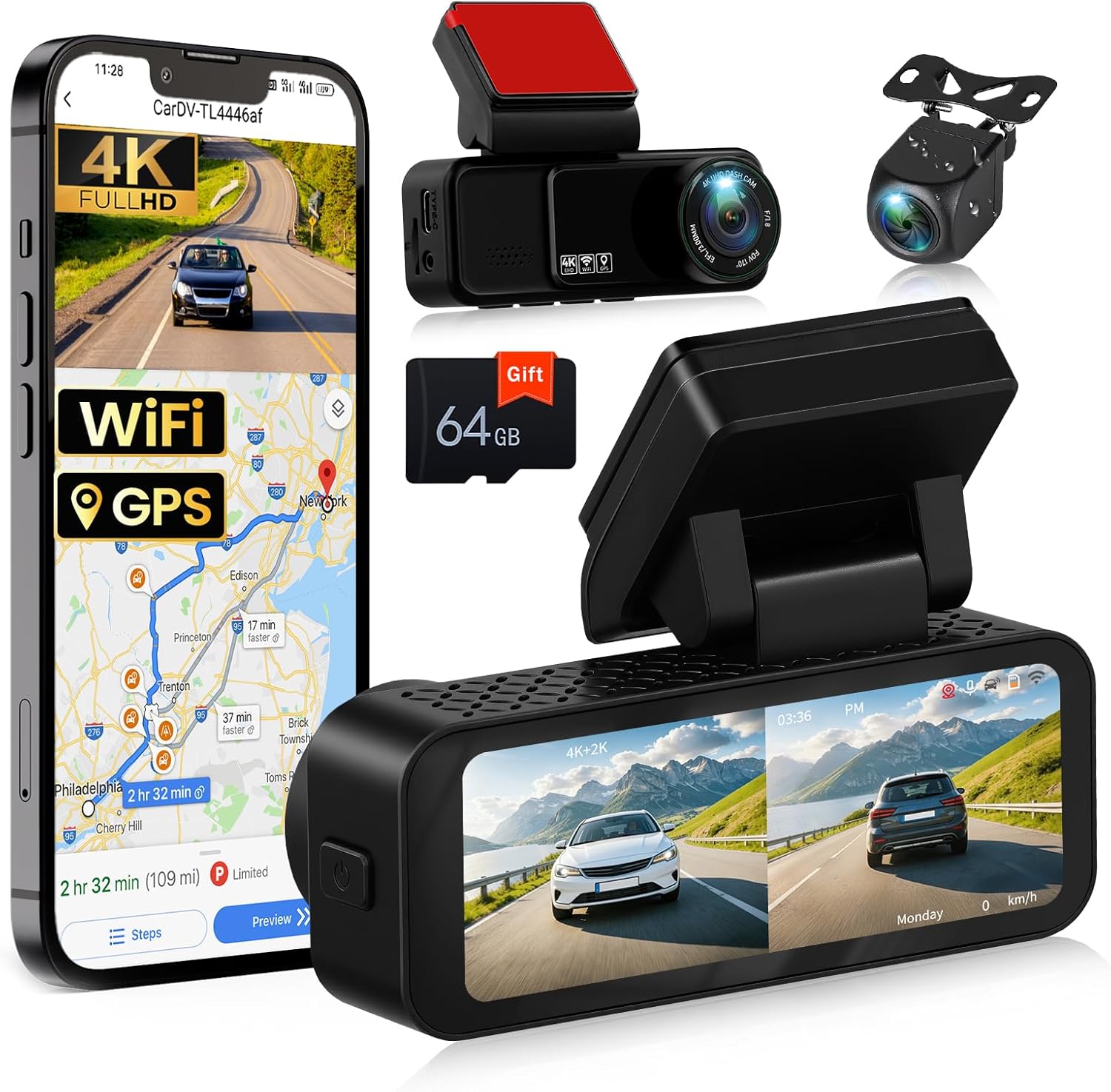 | Other Special Features of the Product | 4K Front & 1080p Rear Dash Cam, Night Vision, G-Sensor, Loop Recording, Support 24 Hour Parking Monitor, Support WiFi and App Control, with GPS Function and 64G Card, BSD/ADAS/LCA Smart Alert Feature |