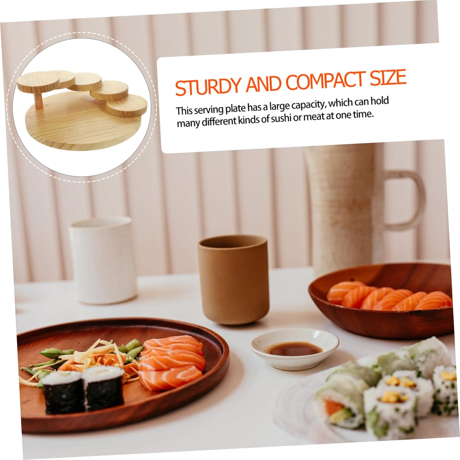 Package List 1 × Wooden Serving Tray Features -Material:Wood creative dish - Size: 27.00X27.00X10.50cm/10.61X10.61X4.13in sushi plate - storing snacks, desserts, this sushi plate is a must-have product in your life sushi holder. - It can be wonderfully used as a food display plate, which can increase your appetite very well service - Used for holding food and table decoration, beautiful rotating stair appearance with decorative effect sushi boat. - Using reusable wood material, , can be used for a lasting time, and will not be easily damaged sushi serving tray. - ColorKhaki sushi sashimi serving plate - Reusable and save much money, for storing sushi, salmon and seafood, and snack sushi platter.Goods Informationsushi dishes The rotating steps stairs shaped serving tray is creative, which can easily attract the guests.sauce condiment tray food sushi plate tray, suitable for family, party, restaurant, catering, etc.sushi serving tray a variety of foods, including sushi, meat, appetizers, desserts, sushi, bread, cupcakes, etc