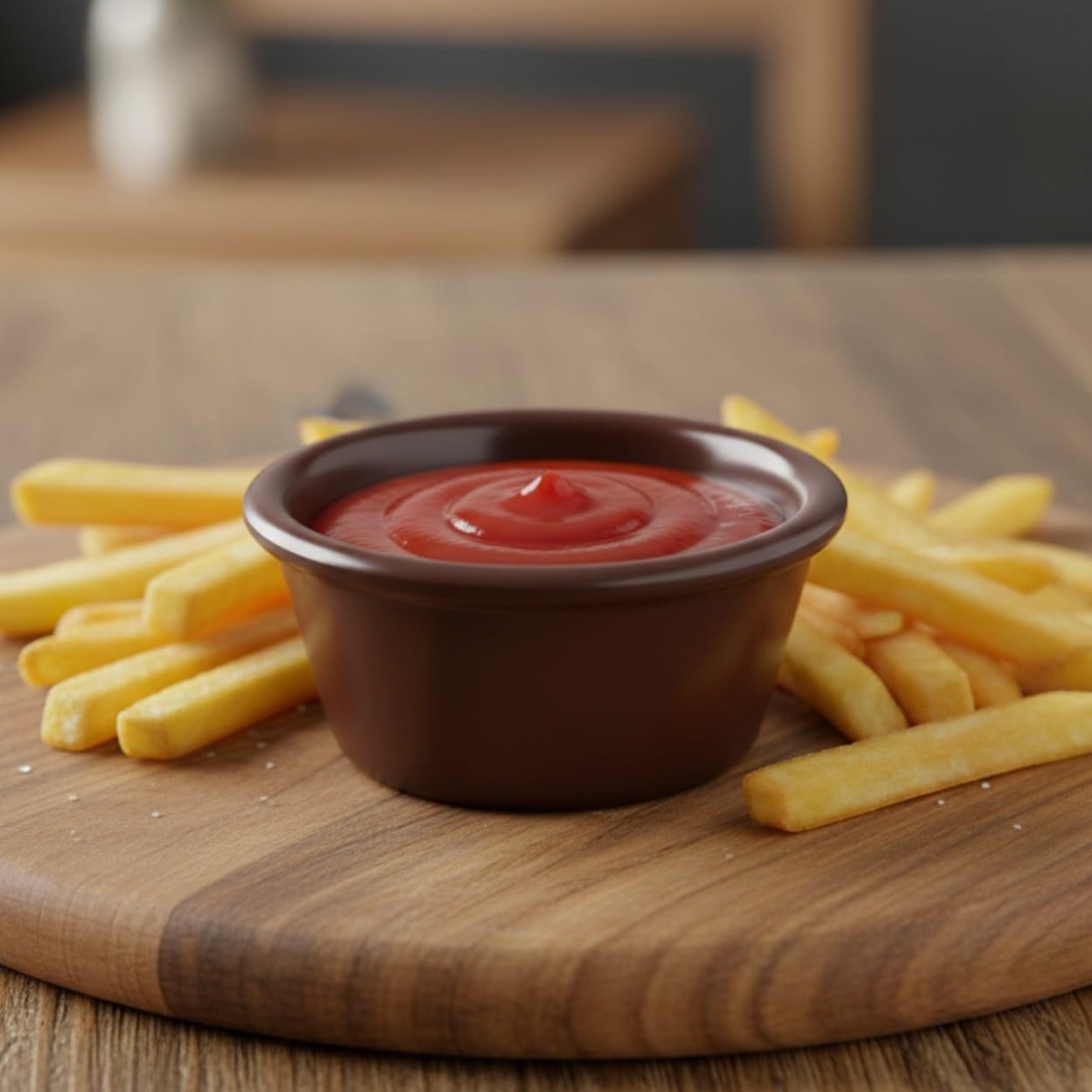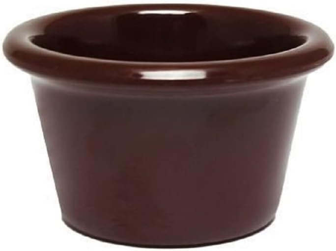 The TrueCraftware – 3 oz. Smooth Ramekin Melamine Chocolate Color Set of 12 blends warm, rich color with practical performance to elevate your tabletop presentation. These ramekins are a versatile addition to any kitchen or dining setting, offering the perfect size and appearance for serving sauces, dips, condiments, and small sides with style. Each ramekin holds 3 oz., making it ideal for individual portions of salsa, guacamole, honey, soy sauce, dressings, or dessert toppings. Whether you're serving at a restaurant, food truck, buffet, or home dinner party, these compact cups help maintain portion consistency while enhancing the overall presentation. Crafted from durable melamine, these ramekins are lightweight yet sturdy, providing a dependable option for repeated daily use. The smooth interior surface ensures easy scooping and quick cleaning, while the melamine construction adds a refined ceramic-like look without the heaviness. The deep chocolate brown color adds an earthy, modern touch to your serviceware collection and complements a wide variety of tabletop themes—from rustic to contemporary. Their stackable design makes them easy to store in both home kitchens and commercial prep areas. Whether you're plating for guests or prepping in the back of house, the TrueCraftware Smooth Melamine Ramekin Set offers reliable utility and a polished look. It’s a go-to solution for chefs, caterers, and home entertainers who value style and efficiency. Measures 3 oz, 3-1/8" Diameter x 1-5/8" Height, Smooth Ramekin, Chocolate Color, Melamine, Dishwasher Safe