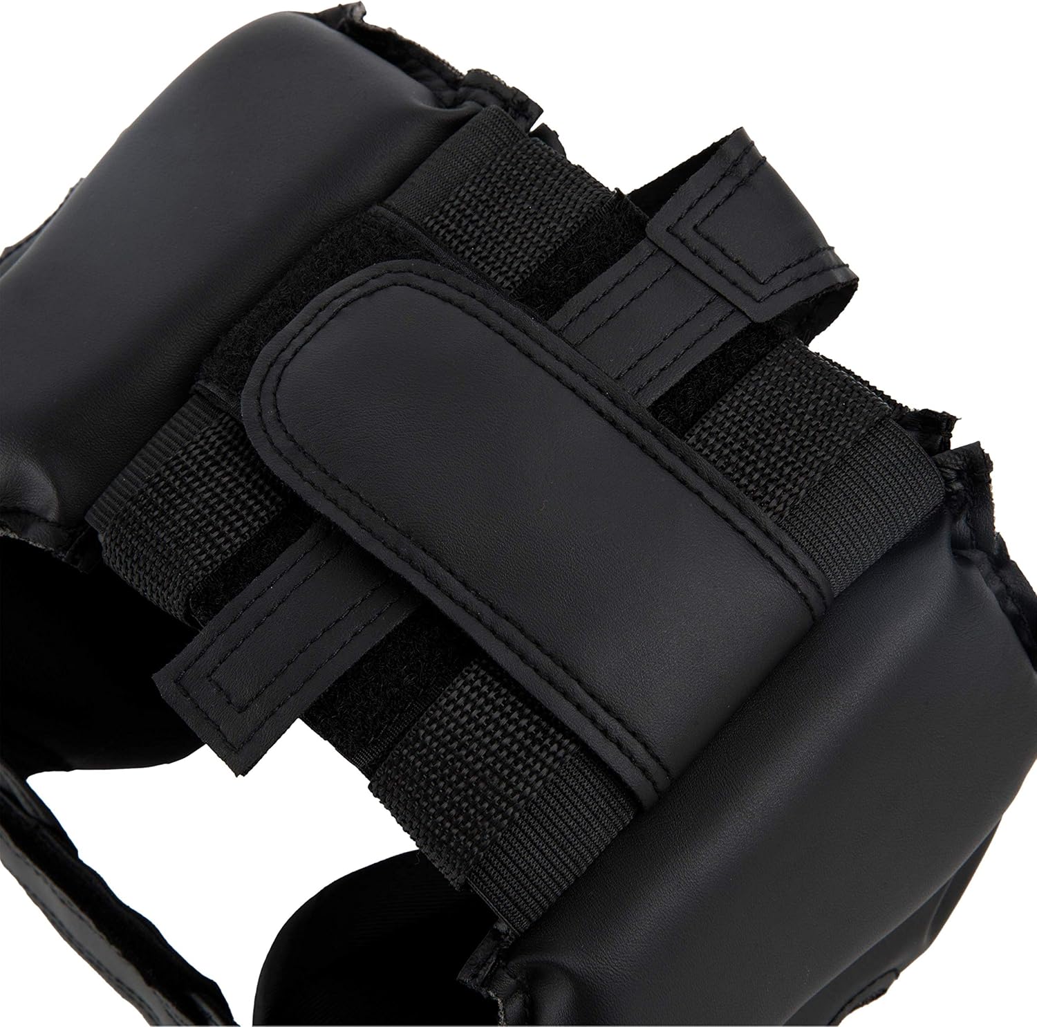 Layers of high-density impact-dispersing foam encased in high-quality engineered leather. Coverage to critical strike zones, chin and cheek protection. Non-slip soft lining on interior of head reduces spinning during grappling and training sessions.