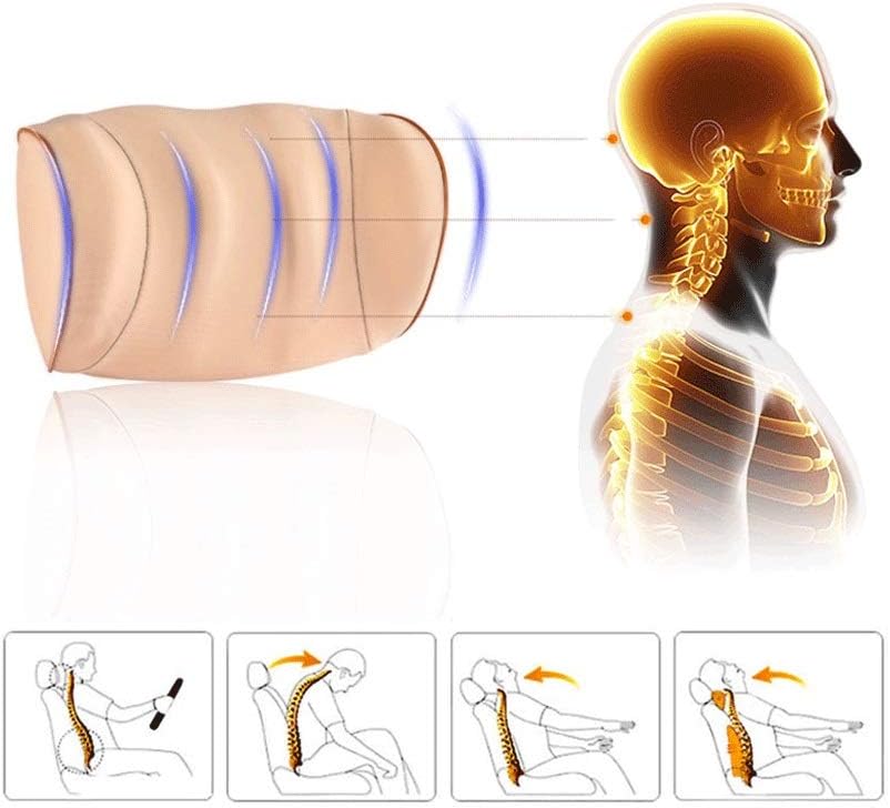 Lumbar pillow reduce the pressure points on your back from long time sitting or driving,give you the powerful support and effective protection,relieves and alleviates both acute and chronic pain from.In order to prevent all kinds of waist problems,it is important to maintain the correct posture while sitting and avoid exerting pressure on the tailbone,our pillows support the natural curve of your lower back,keeping your spine aligned,promoting a posture.Color:Beige,Brown,Gray,black.Pack list:Car lumbar pillow*1set.Car waist pillow waist support pillow office chair and car cushion memory foam adjustable shoulder strap and ventilation