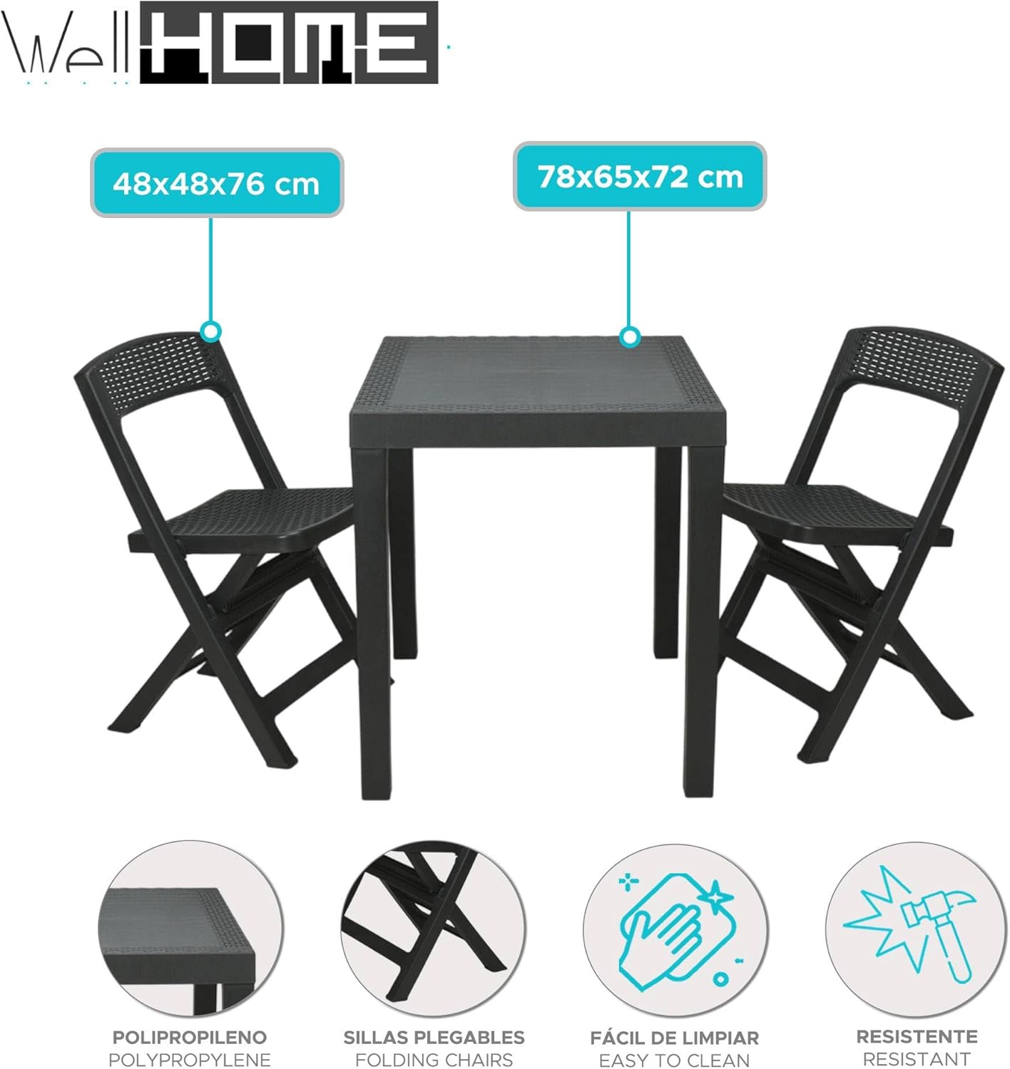 | Item Type Name | Well Home Garden Set 'Poker' Table + 2 Chairs in Anthracite |
