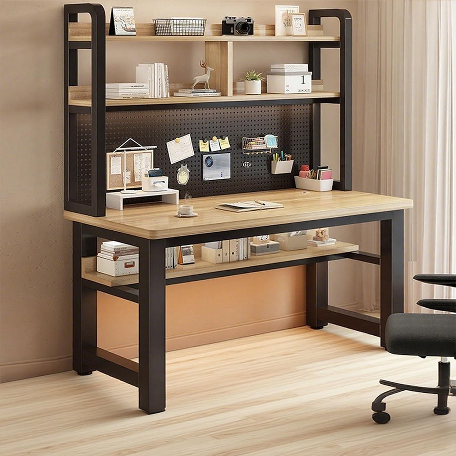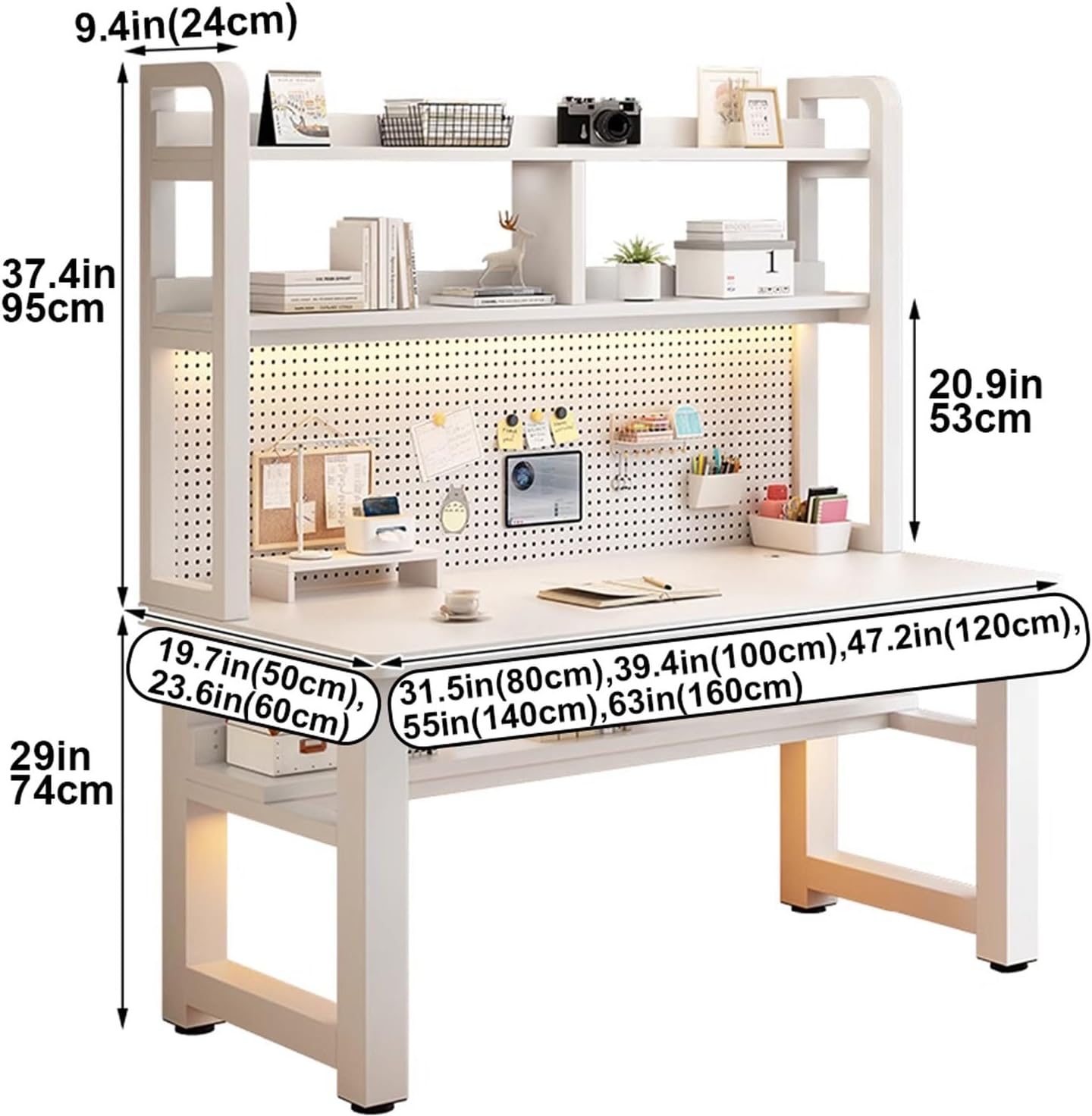 Introducing our versatile and elegant home office desk with built-in bookcase and integrated combined designDESK & BOOKSHELF TWO-IN-ONEIts vertical design features an open bookshelf and attached a Pegboard to save floor space while enhancing storage options. Your stuffs it still feels spacious!DURABILITY & STURDY CONSTRUCTIONWide and thick solid wood tabletop and strong metal legs for this home office desk provide the maximum stability and durability. It can withstand the pressures and weights of daily use and long-term placement, ensuring the stability and longevity of the computer desk.Product: Computer desk with storage/Study table/Home office desksStyle: Integrated combination of desk and bookcase/ with pegboardMaterial: 25mm wooden board + iron frameStyle: simple and modernSize: 31.5"L x 19.7"W x 66.5"H(80x50x169cm) , 31.5"L x 23.6"W x 66.5"H(80x60x169cm) , 35.4"L x 23.6"W x 66.5"H(90x60x169cm) , 39.5"L x 19.7"W x 66.5"H(100x50x169cm) ,39.5"L x 23.6"W x 66.5"H(100x60x169cm) , 43.3"L x 23.6"W x 66.5"H(110x60x169cm) , 47.2"L x 19.7"W x 66.5"H(120x50x169cm) , 47.2"L x 23.6"W x 66.5"H(120x60x169cm) ,51"L x 23.6"W x 66.5"H(130x60x169cm) , 55"L x 19.7"W x 66.5"H(140x50x169cm) , 55"L x 23.6"W x 66.5"H(140x60x169cm) , 59"L x 23.6"W x 66.5"H(150x60x169cm) , 63"L x 19.7"W x 66.5"H(160x50x169cm) ,63"L x 23.6"W x 66.5"H(160x60x169cm)Usage: Suitable for work, study, gaming, and other office activitiesSuitable Scenarios: Bedroom, living room, office, school, hospital, studio, study, meeting table★ We only sell Computer Desk, the others are props.★ Slight color errors may occur due to different shooting tools. Please refer to the actual product.★ In manual measurement, the measurement error is 1-3cm. For more information, please refer to the actual product.