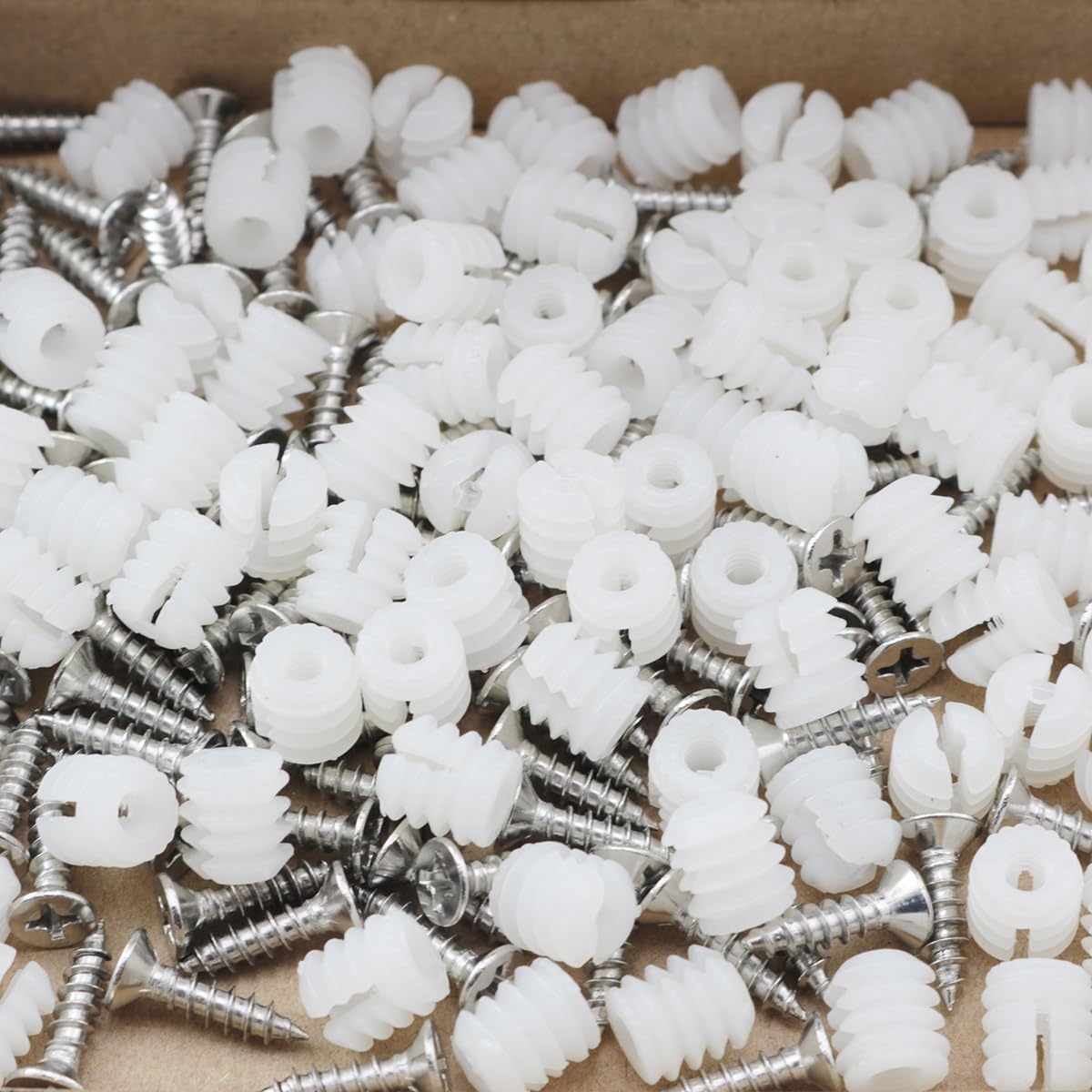 Pin diameter 8.7mm/0.34 inches, length 10mm/0.39 inches These plastic pins are made from high quality plastic material and the door hinge screws are made from stainless steel for durability. The pins have inbuilt threads and extensions for a secure and protected connection. The pins are an affordable repair small parts, if some furniture is damaged, you don't need to replace the whole furniture, use the hinge pins and self-tapping screws can be repaired, small appearance, easy to carry.